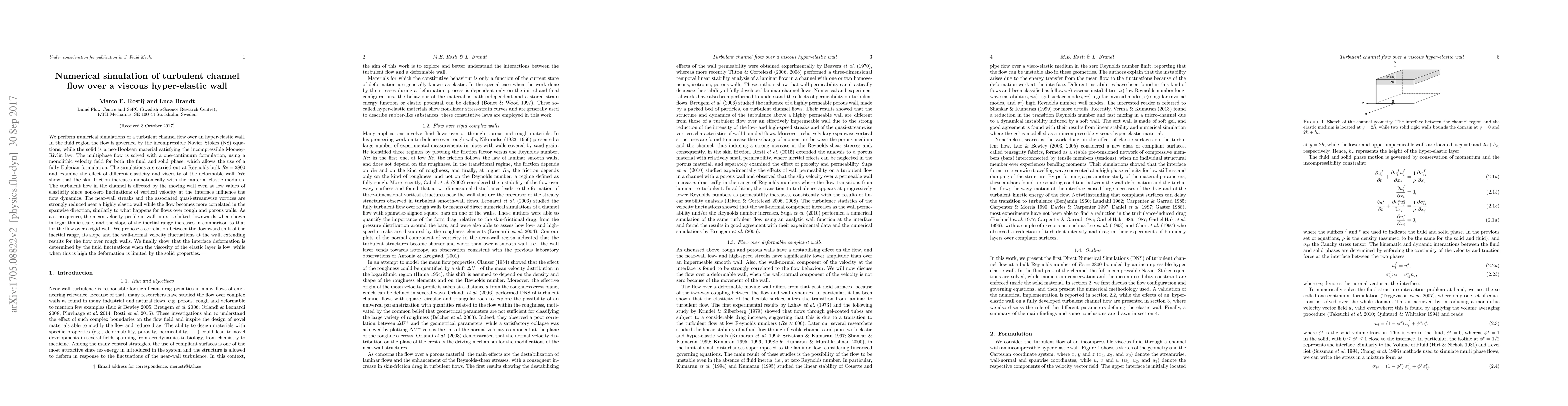 This paper numerically simulates turbulent channel flow over a hyper-elastic wall, showing that skin friction increases with the material's elasticity. The elastic wall influences the turbulent flow dynamics, reducing near-wall streaks and enhancing spanwise correlation, and shifts the mean velocity profile downwards in logarithmic scale.
