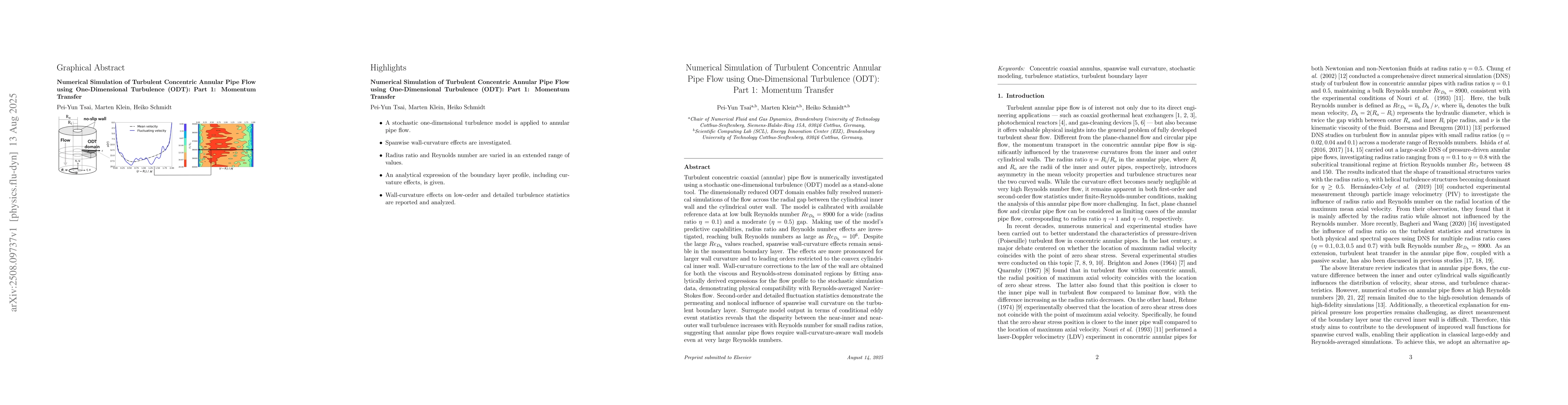 Turbulent concentric coaxial (annular) pipe flow is numerically investigated using a stochastic one-dimensional turbulence (ODT) model as a stand-alone tool. The dimensionally reduced ODT domain enables fully resolved numerical simulations of the flow across the radial gap between the cylindrical inner wall and the cylindrical outer wall. The model is calibrated with available reference data at low bulk Reynolds number $Re_{D_h} = 8900$ for a wide (radius ratio $\eta = 0.1$) and a moderate ($\eta = 0.5$) gap. Making use of the model's predictive capabilities, radius ratio and Reynolds number effects are investigated, reaching bulk Reynolds numbers as large as $Re_{D_h}=10^6$. Despite the large $Re_{D_h}$ values reached, spanwise wall-curvature effects remain sensible in the momentum boundary layer. The effects are more pronounced for larger wall curvature and to leading orders restricted to the convex cylindrical inner wall. Wall-curvature corrections to the law of the wall are obtained for both the viscous and Reynolds-stress dominated regions by fitting analytically derived expressions for the flow profile to the stochastic simulation data, demonstrating physical compatibility with Reynolds-averaged Navier--Stokes flow. Second-order and detailed fluctuation statistics demonstrate the permeating and nonlocal influence of spanwise wall curvature on the turbulent boundary layer. Surrogate model output in terms of conditional eddy event statistics reveals that the disparity between the near-inner and near-outer wall turbulence increases with Reynolds number for small radius ratios, suggesting that annular pipe flows require wall-curvature-aware wall models even at very large Reynolds numbers.