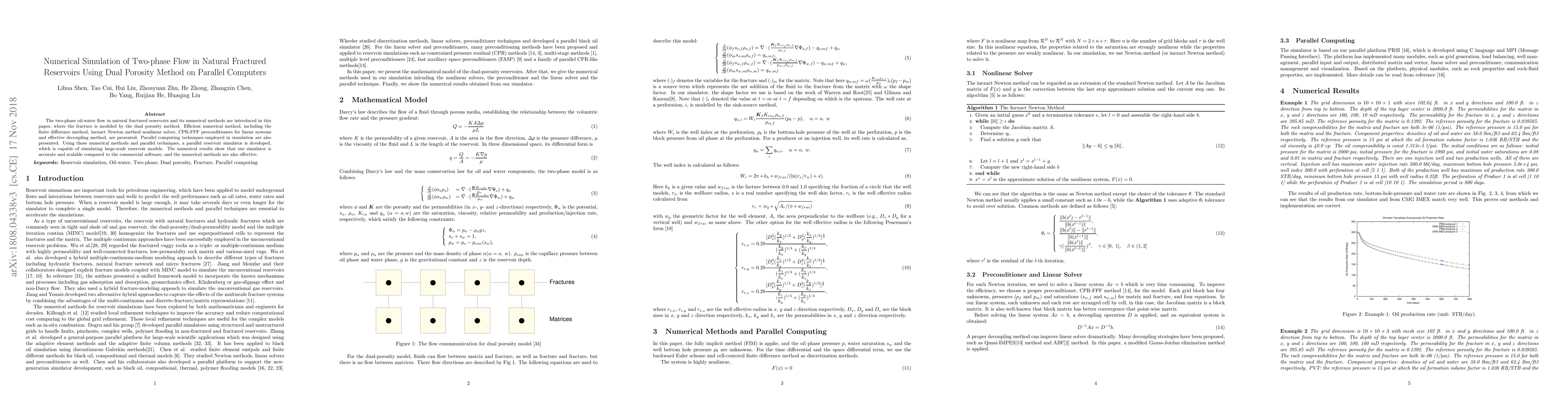 A new parallel reservoir simulator has been developed to accurately model two-phase oil-water flow in natural fractured reservoirs using the dual porosity method. The simulator outperforms commercial software and is scalable for large-scale models.