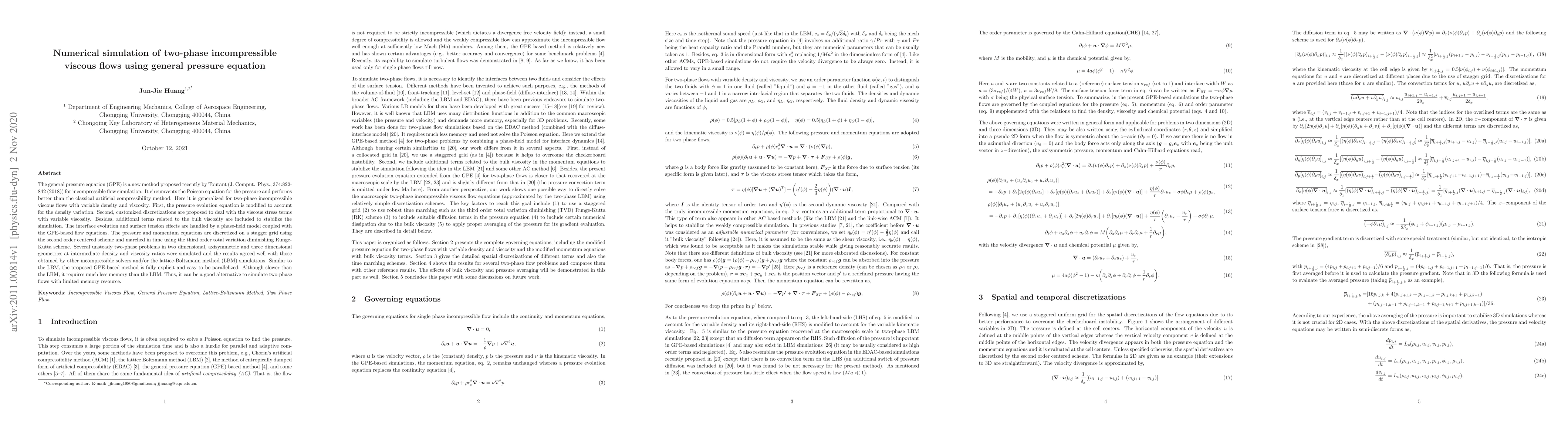 This paper generalizes the general pressure equation (GPE) method for simulating two-phase incompressible viscous flows with variable density and viscosity. The GPE-based approach, which avoids the Poisson equation for pressure, is shown to be effective and parallelizable, requiring less memory than the lattice-Boltzmann method, making it suitable for simulations with limited memory resources.