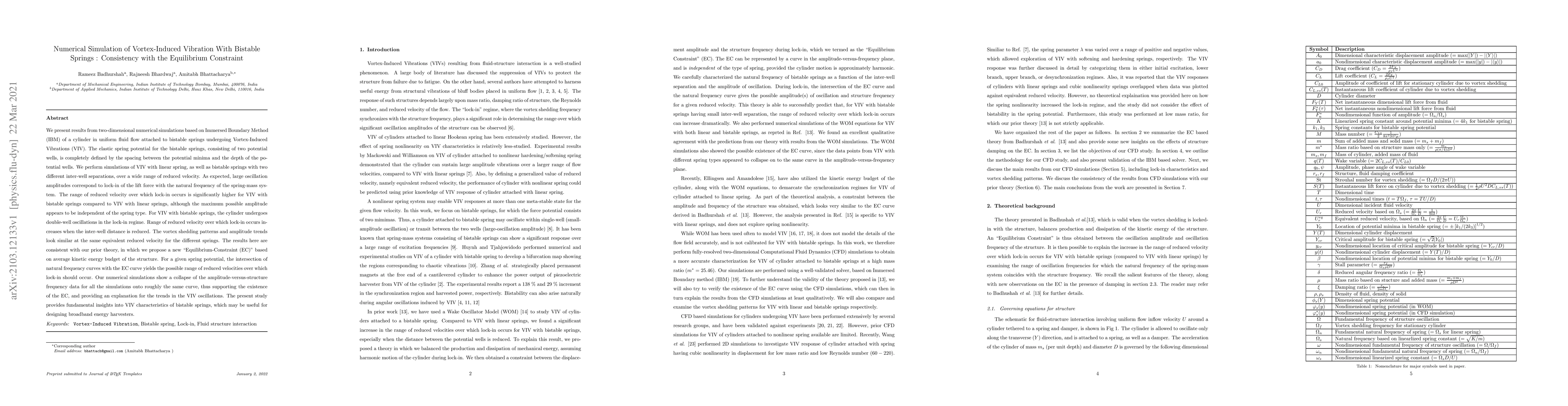 Researchers simulated vortex-induced vibration (VIV) with linear and bistable springs, finding that bistable springs exhibit higher lock-in velocities and double-well oscillations in the lock-in regime.