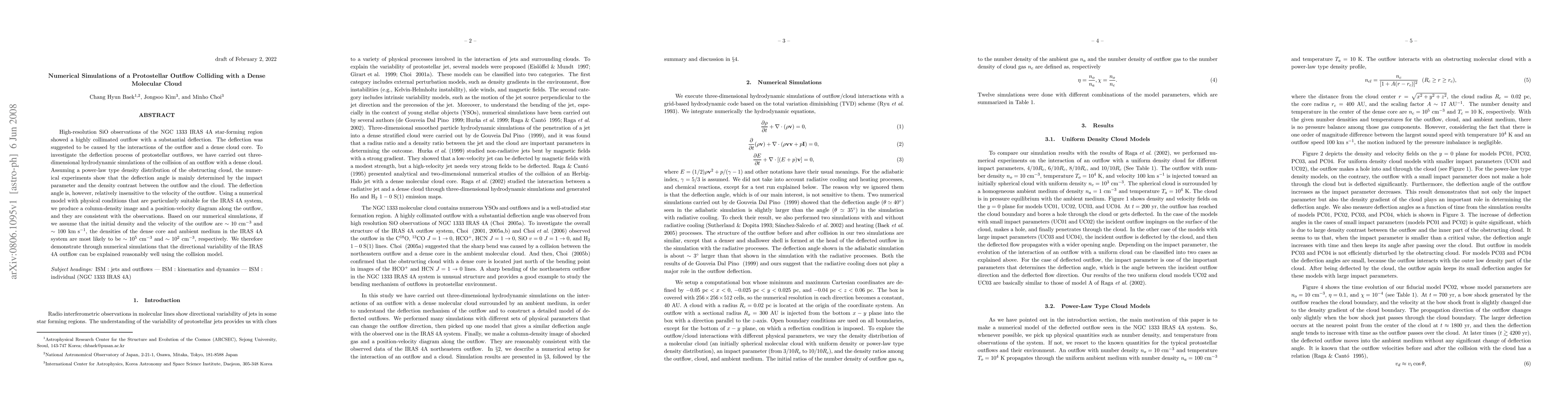 Numerical simulations show that a protostellar outflow's deflection in the NGC 1333 IRAS 4A region can be explained by its collision with a dense cloud core, with the deflection angle determined by impact parameter and density contrast.