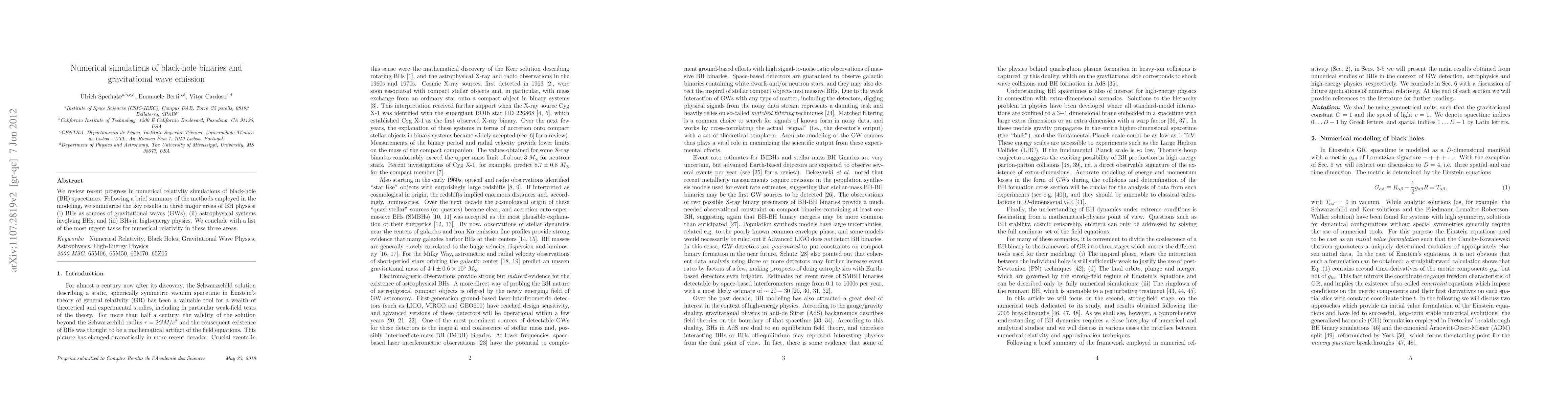 Researchers have made significant progress in simulating black-hole binaries and gravitational wave emission using numerical relativity methods. The studies focus on the physics of black holes as sources of gravitational waves and their roles in astrophysics and high-energy physics.