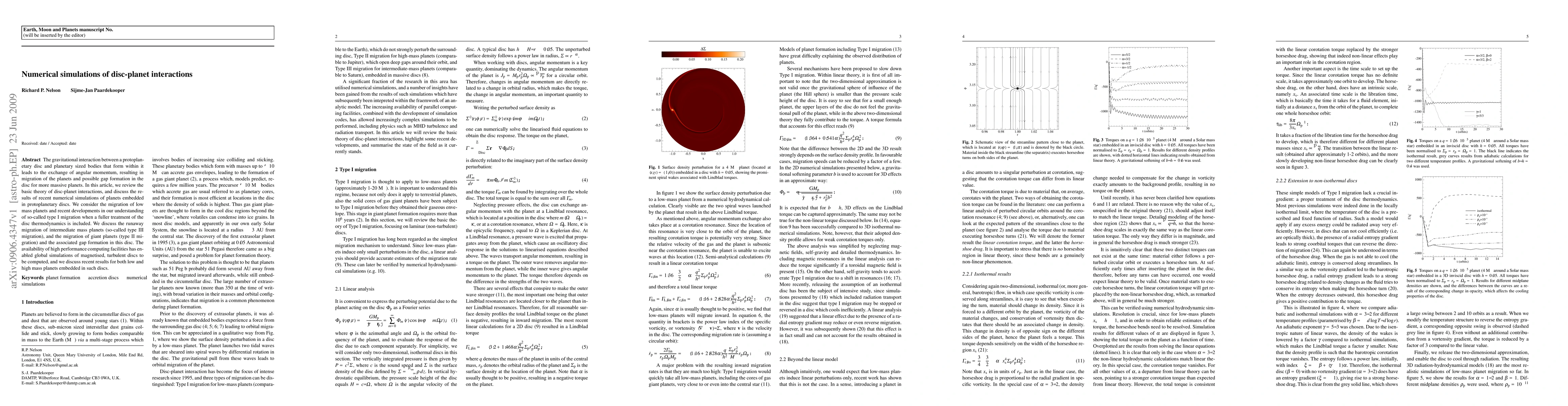 This paper reviews the theory and numerical simulations of disc-planet interactions, focusing on the migration of planets within protoplanetary discs and the formation of gaps, particularly in the context of type I, II, and III migrations. It highlights recent advancements enabled by high-performance computing, including simulations of magnetized, turbulent discs.
