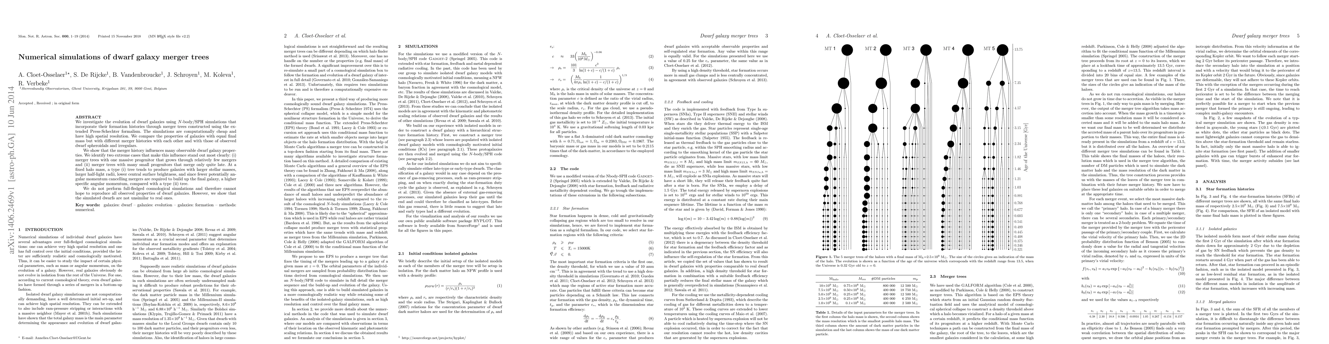 This paper uses N-body/SPH simulations to study the evolution of dwarf galaxies through merger trees, showing that merger history significantly affects their observable properties. The study identifies two distinct merger tree types, highlighting differences in stellar mass, size, brightness, and angular momentum between them.