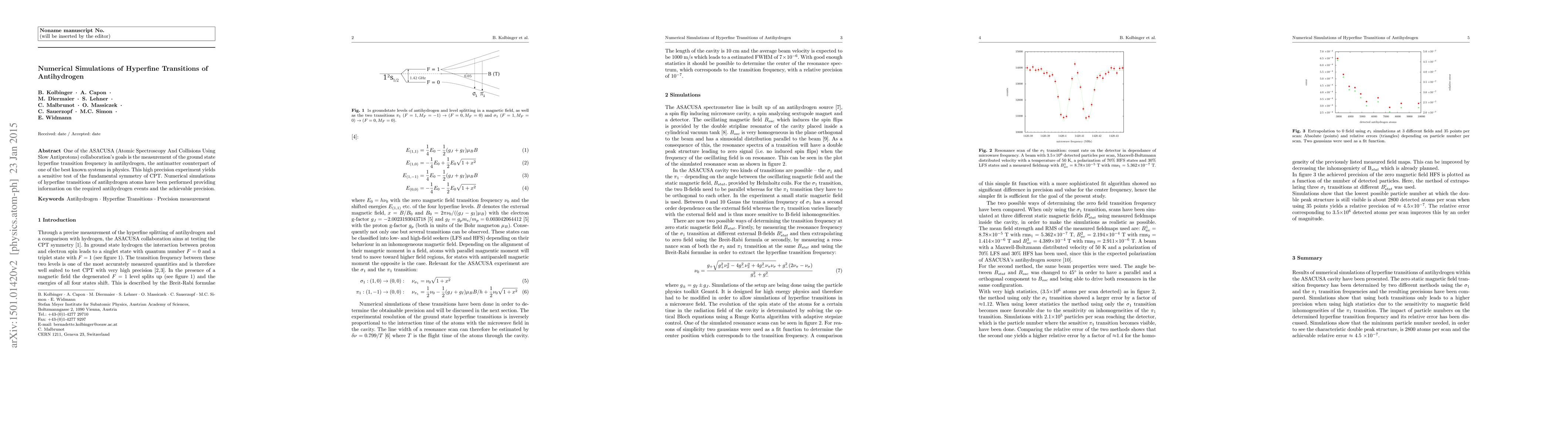 Summary: The ASACUSA collaboration aims to measure the hyperfine transition frequency in antihydrogen to test CPT symmetry. Numerical simulations have been conducted to determine the necessary antihydrogen events and achievable precision for this high-precision experiment.
