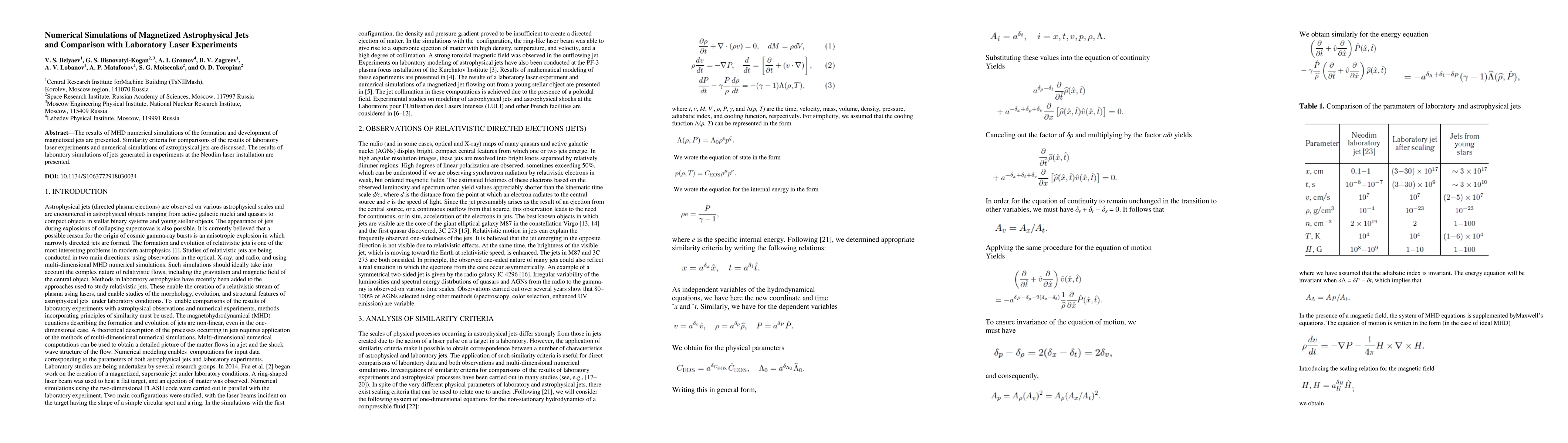 The results of MHD numerical simulations of the formation and development of magnetized jets are presented. Similarity criteria for comparisons of the results of laboratory laser experiments and numerical simulations of astrophysical jets are discussed. The results of laboratory simulations of jets generated in experiments at the Neodim laser installation are presented.