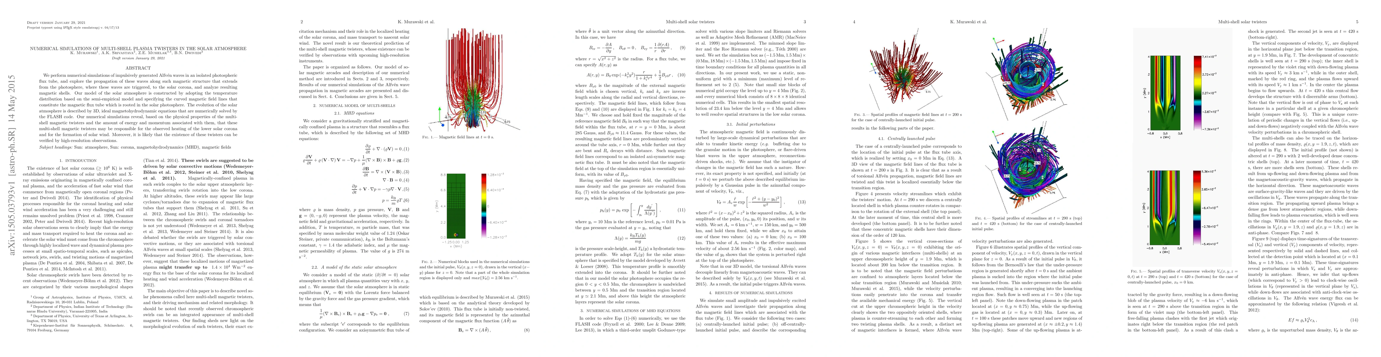 We perform numerical simulations of impulsively generated Alfv\'en waves in an isolated photospheric flux tube, and explore the propagation of these waves along such magnetic structure that extends from the photosphere, where these waves are triggered, to the solar corona, and analyze resulting magnetic shells. Our model of the solar atmosphere is constructed by adopting the temperature distribution based on the semi-empirical model and specifying the curved magnetic field lines that constitute the magnetic flux tube which is rooted in the solar photosphere. The evolution of the solar atmosphere is described by 3D, ideal magnetohydrodynamic equations that are numerically solved by the FLASH code. Our numerical simulations reveal, based on the physical properties of the multi-shell magnetic twisters and the amount of energy and momentum associated with them, that these multi-shell magnetic twisters may be responsible for the observed heating of the lower solar corona and for the formation of solar wind. Moreover, it is likely that the existence of these twisters can be verified by high-resolution observations.