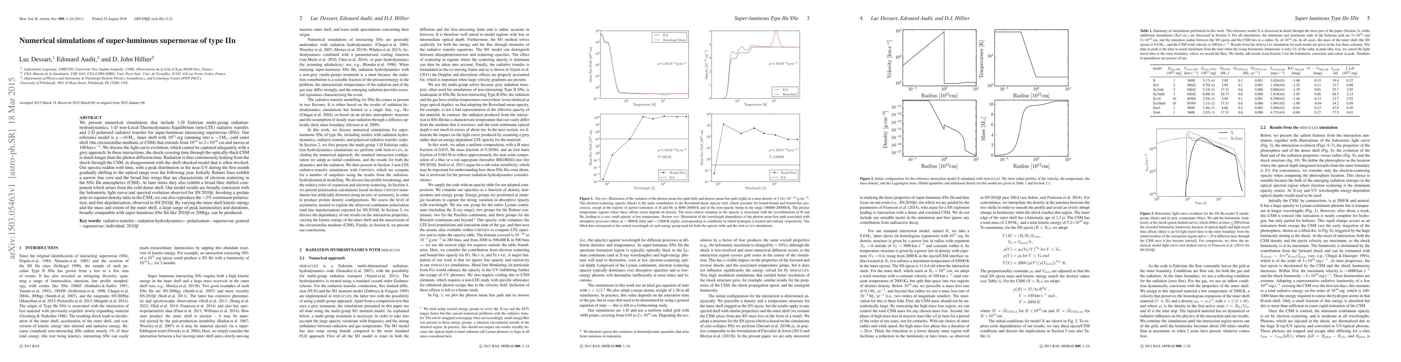 We present numerical simulations that include 1-D Eulerian multi-group radiation-hydrodynamics, 1-D non-LTE radiative transfer, and 2-D polarised radiative transfer for super-luminous interacting supernovae (SNe). Our reference model is a ~10Msun inner shell with 10^51erg ramming into a ~3Msun cold outer shell (the circumstellar-medium, or CSM) that extends from 10^15cm to 2x10^16cm and moves at 100km/s. We discuss the light curve evolution, which cannot be captured adequately with a grey approach. In these interactions, the shock-crossing time through the optically-thick CSM is much longer than the photon diffusion time. Radiation is thus continuously leaking from the shock through the CSM, in disagreement with the shell-shocked model that is often invoked. Our spectra redden with time, with a peak distribution in the near-UV during the first month gradually shifting to the optical range over the following year. Initially Balmer lines exhibit a narrow line core and the broad line wings that are characteristic of electron scattering in the SNe IIn atmospheres (CSM). At later times they also exhibit a broad blue shifted component which arises from the cold dense shell. Our model results are broadly consistent with the bolometric light curve and spectral evolution observed for SN2010jl. Invoking a prolate pole-to-equator density ratio in the CSM, we can also reproduce the ~2% continuum polarisation, and line depolarisation, observed in SN2010jl. By varying the inner shell kinetic energy and the mass and extent of the outer shell, a large range of peak luminosities and durations, broadly compatible with super-luminous SNe IIn like 2010jl or 2006gy, can be produced.