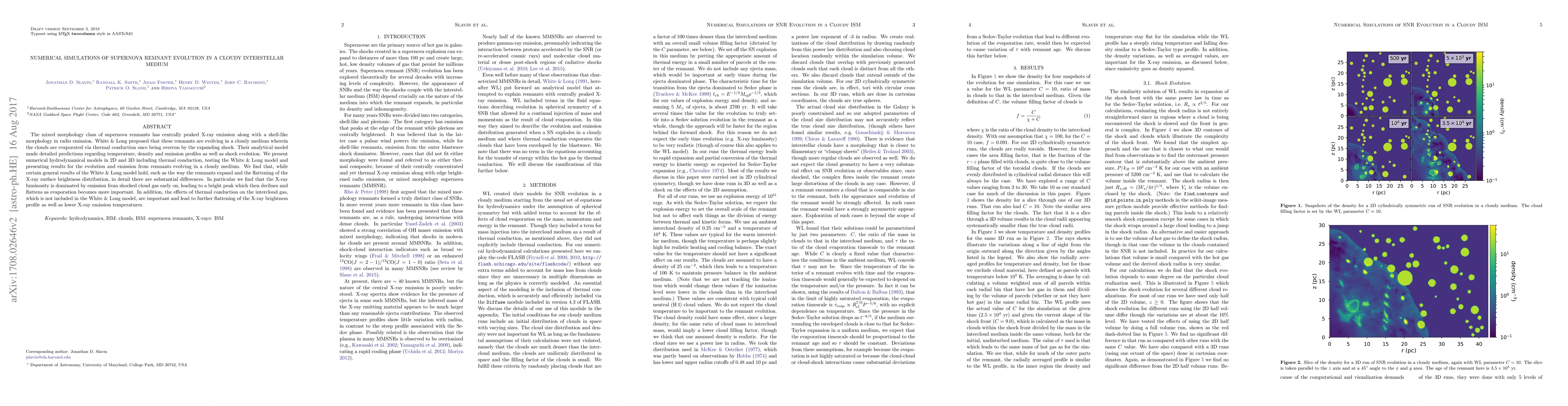 The mixed morphology class of supernova remnants has centrally peaked X-ray emission along with a shell-like morphology in radio emission. White & Long proposed that these remnants are evolving in a cloudy medium wherein the clouds are evaporated via thermal conduction once being overrun by the expanding shock. Their analytical model made detailed predictions regarding temperature, density and emission profiles as well as shock evolution. We present numerical hydrodynamical models in 2D and 3D including thermal conduction, testing the White & Long model and presenting results for the evolution and emission from remnants evolving in a cloudy medium. We find that, while certain general results of the White & Long model hold, such as the way the remnants expand and the flattening of the X-ray surface brightness distribution, in detail there are substantial differences. In particular we find that the X-ray luminosity is dominated by emission from shocked cloud gas early on, leading to a bright peak which then declines and flattens as evaporation becomes more important. In addition, the effects of thermal conduction on the intercloud gas, which is not included in the White & Long model, are important and lead to further flattening of the X-ray brightness profile as well as lower X-ray emission temperatures.