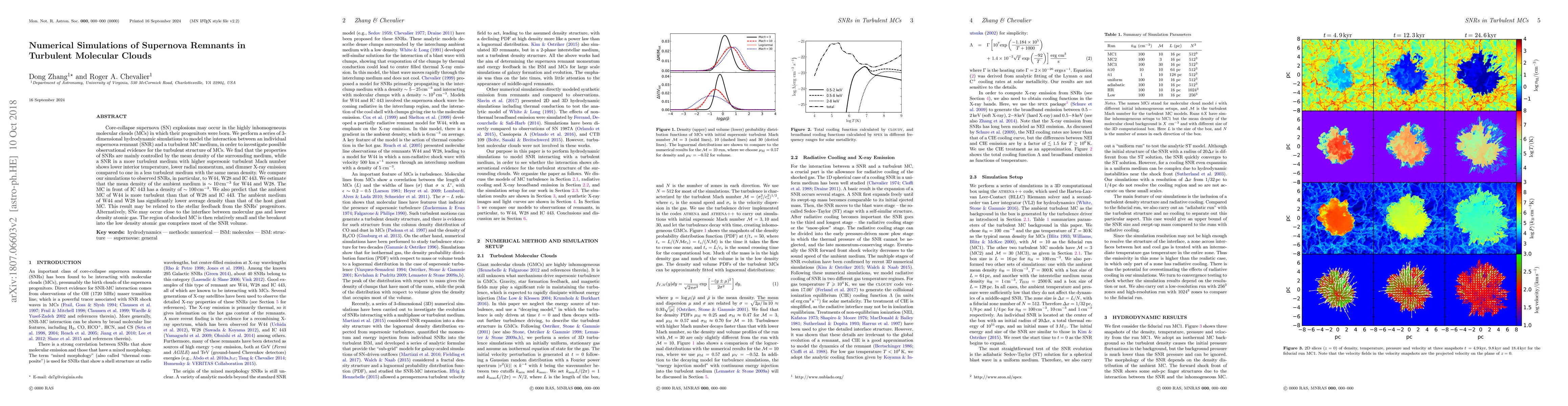 This paper uses 3D hydrodynamic simulations to study how supernova remnants (SNRs) interact with turbulent molecular clouds (MCs) and finds that SNR properties are mainly influenced by the mean density of the surrounding medium. The simulations suggest that SNRs in more turbulent environments exhibit lower interior temperatures, radial momentum, and X-ray emissions compared to those in less turbulent environments, with implications for observed SNRs like W44, W28, and IC 443.