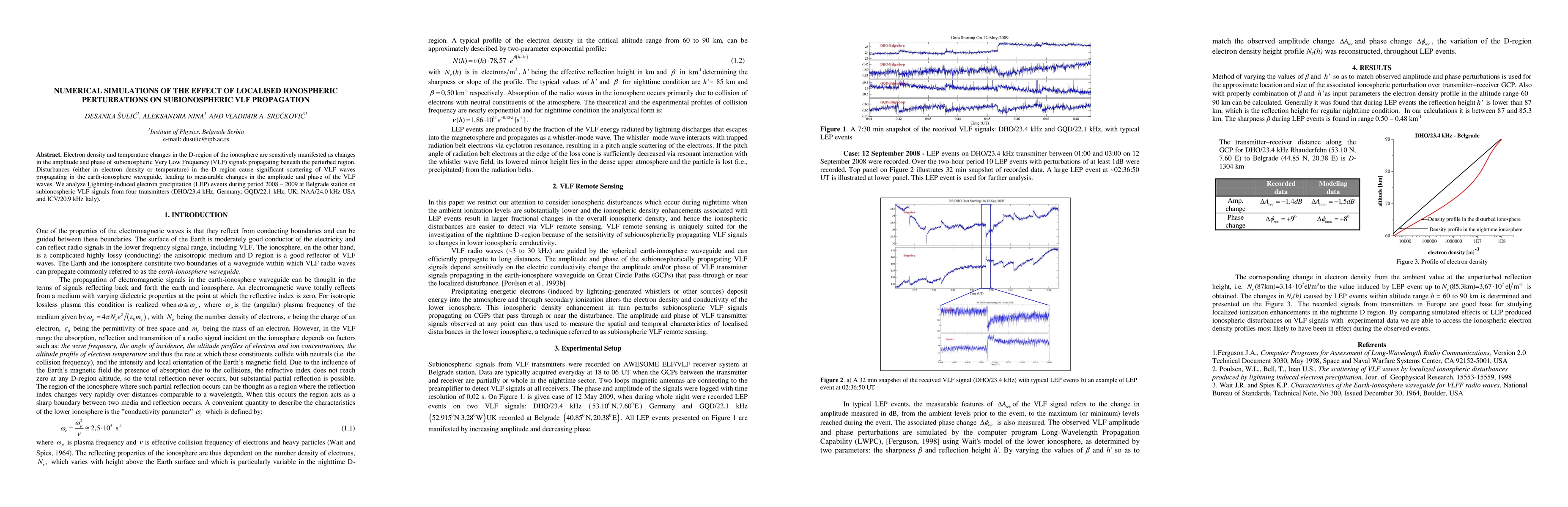 Electron density and temperature changes in the D-region of the ionosphere are sensitively manifested as changes in the amplitude and phase of subionospheric Very Low Frequency (VLF) signals propagating beneath the perturbed region. Disturbances (either in electron density or temperature) in the D region cause significant scattering of VLF waves propagating in the earth-ionosphere waveguide, leading to measurable changes in the amplitude and phase of the VLF waves. We analyze Lightning-induced electron precipitation (LEP) events during period 2008 - 2009 at Belgrade station on subionospheric VLF signals from four transmitters (DHO/23.4 kHz, Germany; GQD/22.1 kHz, UK; NAA/24.0 kHz USA and ICV/20.9 kHz Italy).