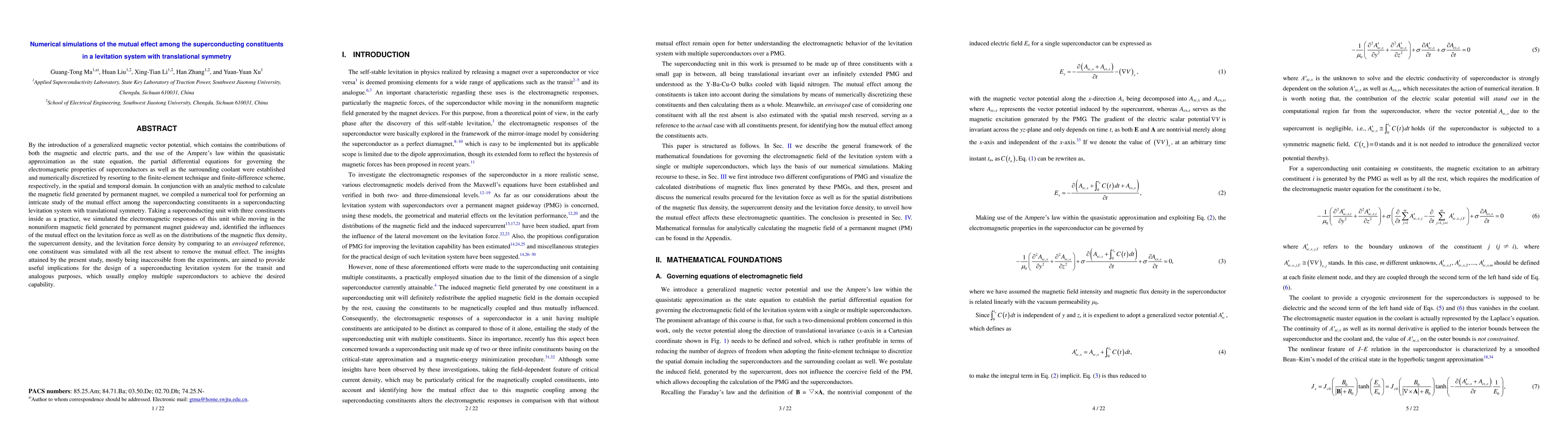 This paper presents a numerical tool for studying the mutual effects among superconducting components in a levitation system using translational symmetry. By employing a generalized magnetic vector potential and Ampere's law, the tool simulates electromagnetic responses in a system with three constituents moving through a nonuniform magnetic field. The study identifies influences of mutual effects on levitation force and related distributions, providing insights for designing superconducting levitation systems for transportation and similar applications.