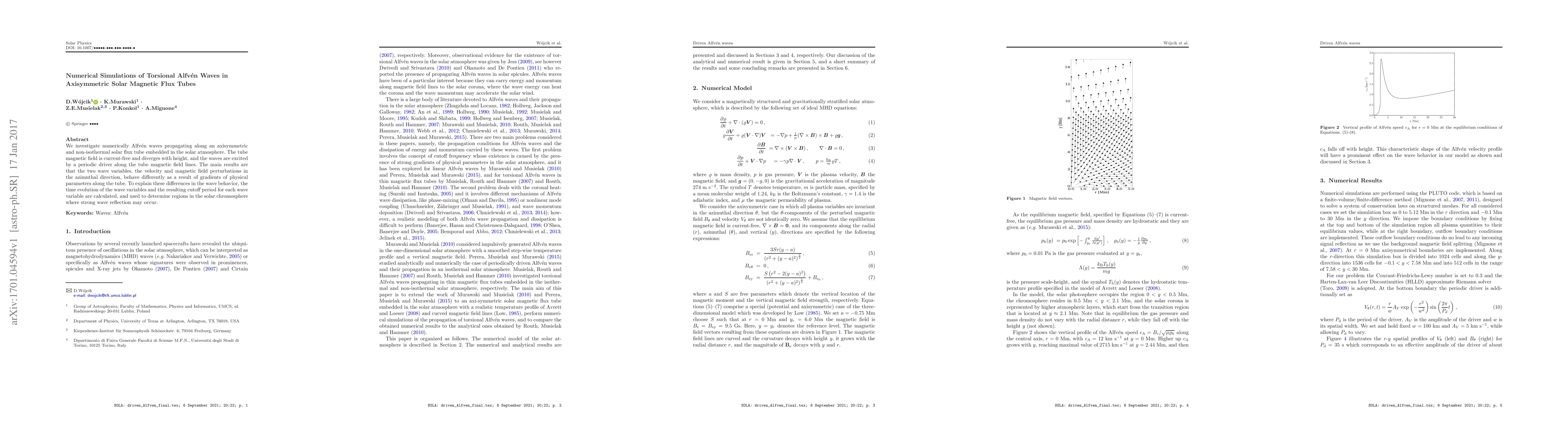 This paper numerically simulates Alfvén waves in a non-isothermal solar flux tube, finding that azimuthal velocity and magnetic field perturbations behave differently due to physical parameter gradients. The study identifies regions in the chromosphere where strong wave reflection may occur based on the time evolution and cutoff periods of these wave variables.