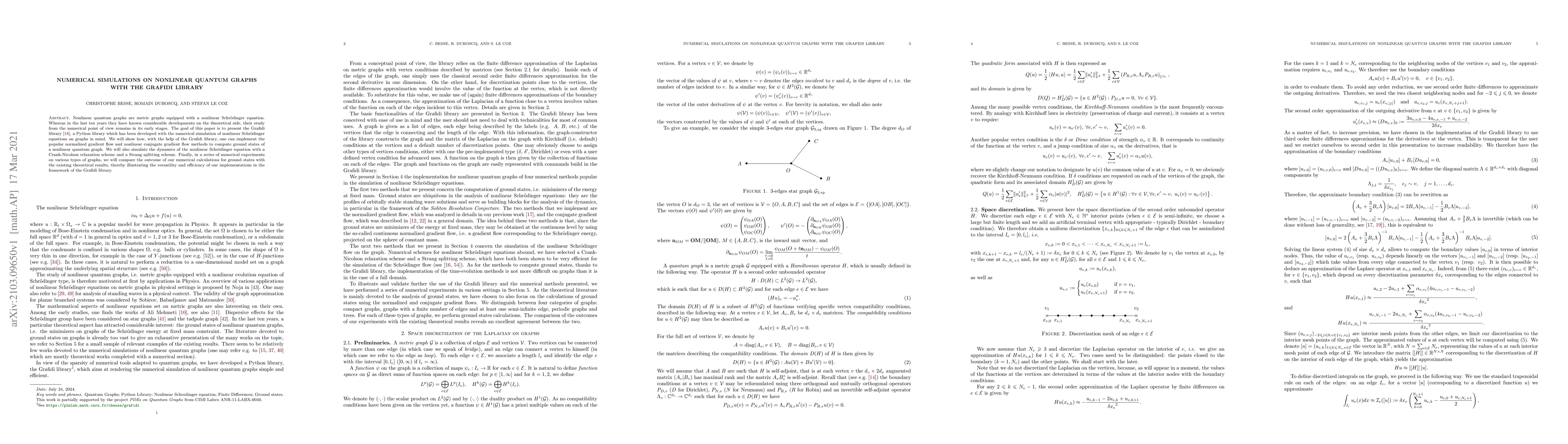 Nonlinear quantum graphs are metric graphs equipped with a nonlinear Schr{\"o}dinger equation. Whereas in the last ten years they have known considerable developments on the theoretical side, their study from the numerical point of view remains in its early stages. The goal of this paper is to present the Grafidi library, a Python library which has been developed with the numerical simulation of nonlinear Schr{\"o}dinger equations on graphs in mind. We will show how, with the help of the Grafidi library, one can implement the popular normalized gradient flow and nonlinear conjugate gradient flow methods to compute ground states of a nonlinear quantum graph. We will also simulate the dynamics of the nonlinear Schr{\"o}dinger equation with a Crank-Nicolson relaxation scheme and a Strang splitting scheme. Finally, in a series of numerical experiments on various types of graphs, we will compare the outcome of our numerical calculations for ground states with the existing theoretical results, thereby illustrating the versatility and efficiency of our implementations in the framework of the Grafidi library.