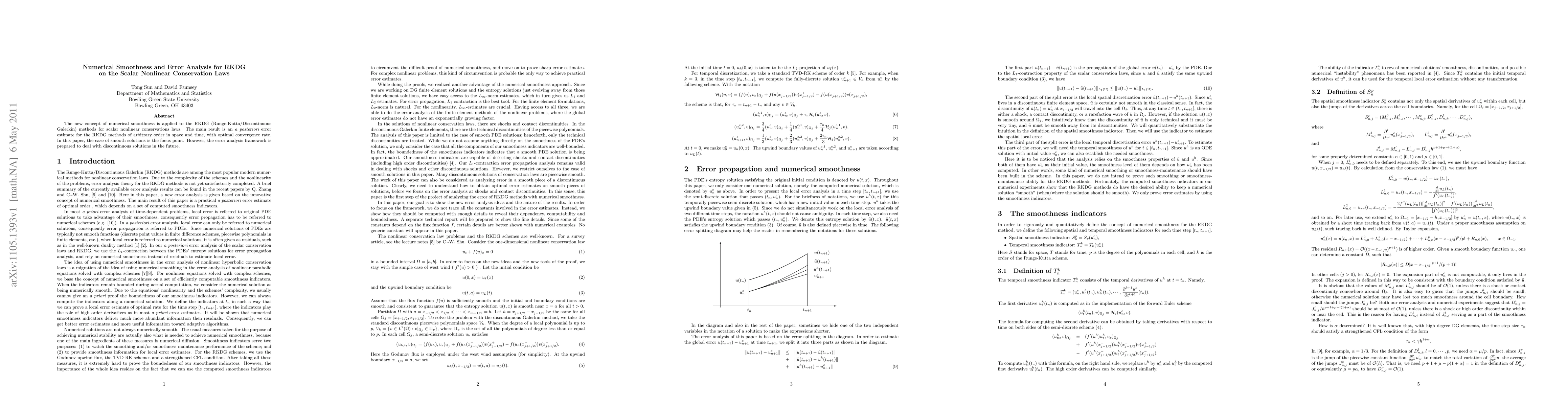 The new concept of numerical smoothness is applied to RKDG methods on the scalar nonlinear conservation laws. The main result is an a posteriori error estimate for the RKDG methods of arbitrary order in space and time, with optimal convergence rate. In this paper, the case of smooth solutions is the focus point. However, the error analysis framework is prepared to deal with discontinuous solutions in the future.