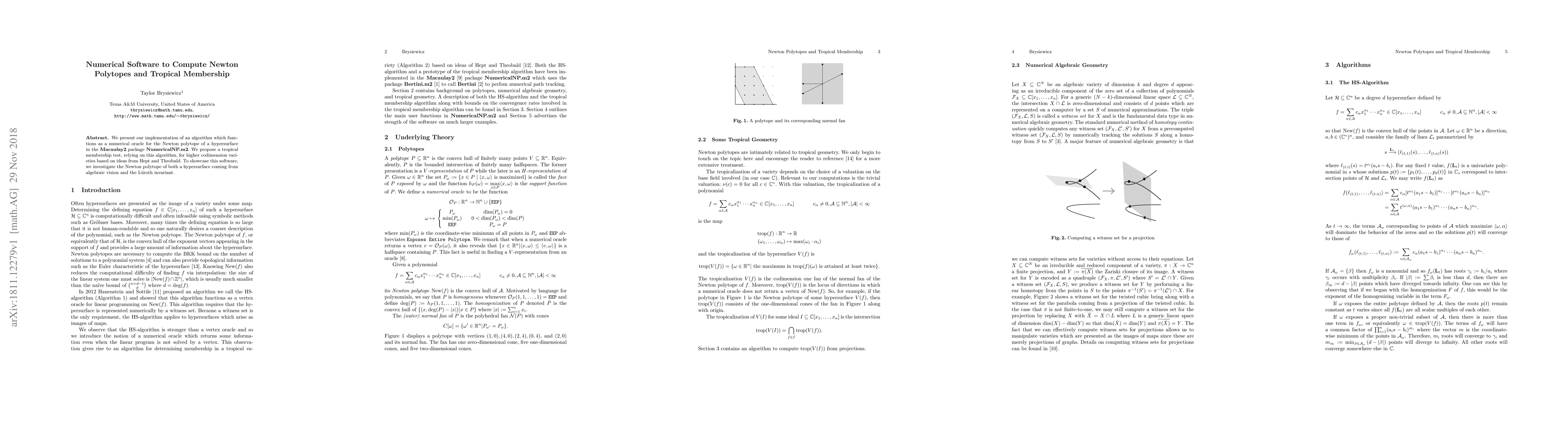 We present our implementation of an algorithm which functions as a numerical oracle for the Newton polytope of a hypersurface in the Macaulay2 package NumericalNP.m2. We propose a tropical membership test, relying on this algorithm, for higher codimension varieties based on ideas from Hept and Theobald. To showcase this software, we investigate the Newton polytope of both a hypersurface coming from algebraic vision and the Luroth invariant.
