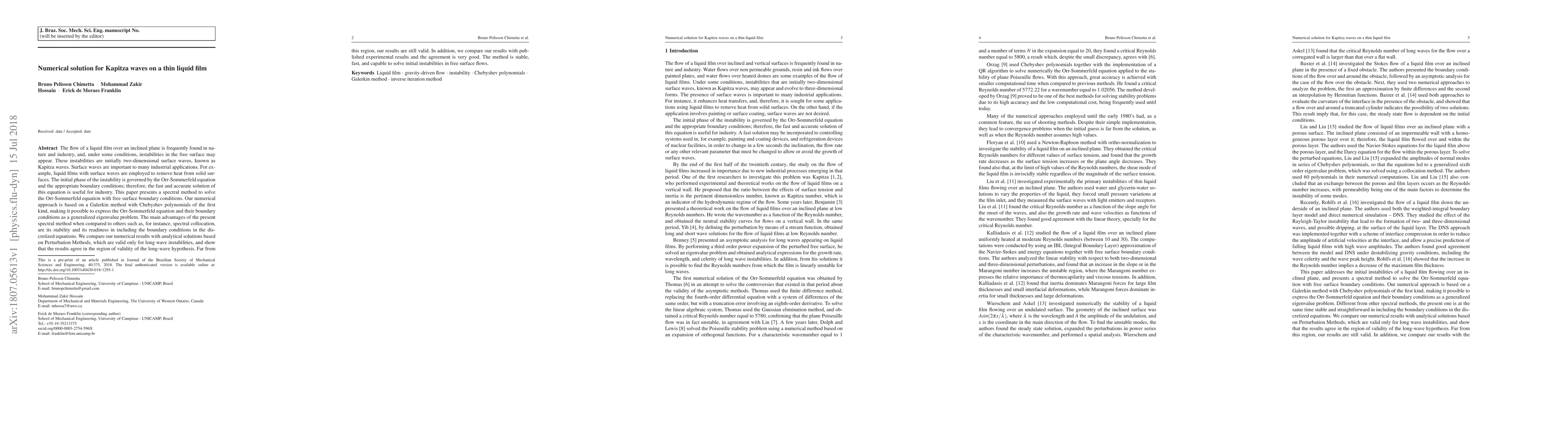 The paper introduces a stable and efficient spectral method using Chebyshev polynomials to accurately solve the Orr-Sommerfeld equation for surface waves on thin liquid films, crucial for understanding flow instabilities. The approach aligns well with analytical and experimental results, enhancing predictions of wave behavior in industrial and natural settings.