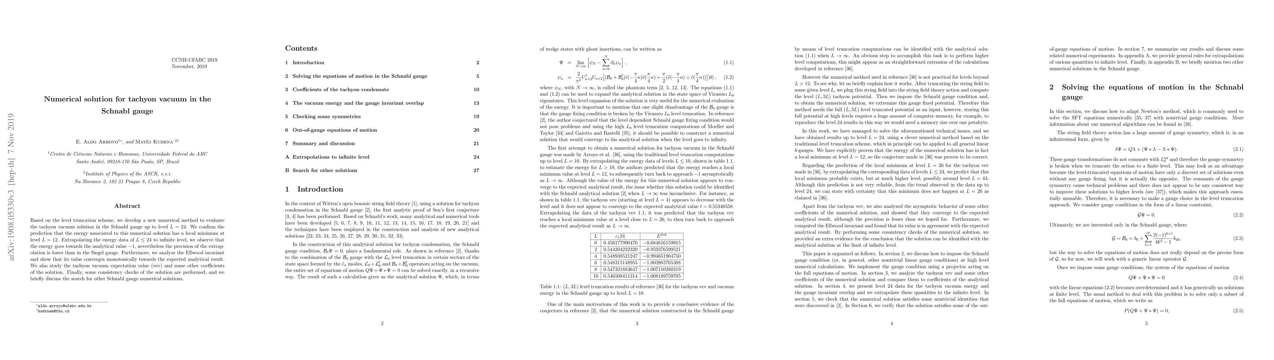 This paper develops a new numerical method to evaluate the tachyon vacuum solution in the Schnabl gauge up to level $L=24$, confirming a local energy minimum at $L=12$ and observing convergence towards the analytical value of $-1$. It also analyzes the Ellwood invariant and tachyon vacuum expectation value, and discusses the precision and potential for further numerical solutions.