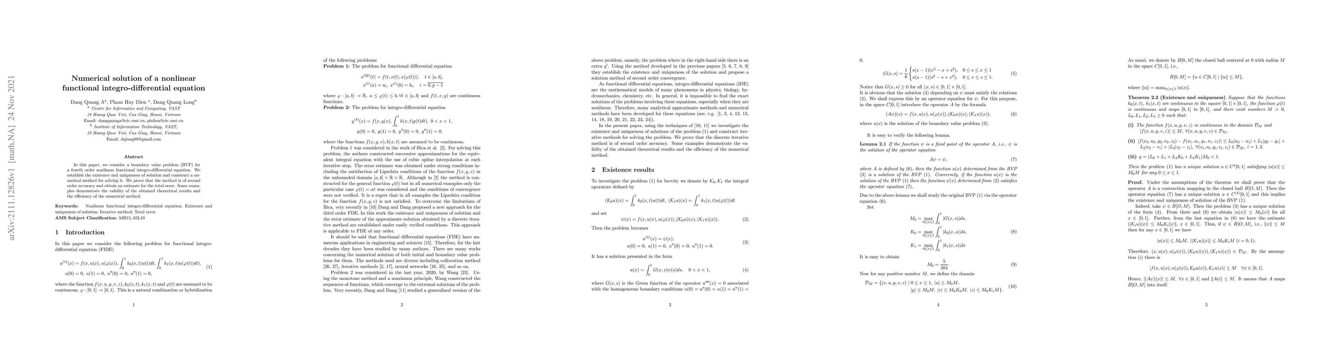 This paper establishes the existence and uniqueness of solutions for a fourth-order nonlinear functional integro-differential equation and develops a second-order accurate numerical method. Theoretical results are validated through examples demonstrating the method's efficiency.