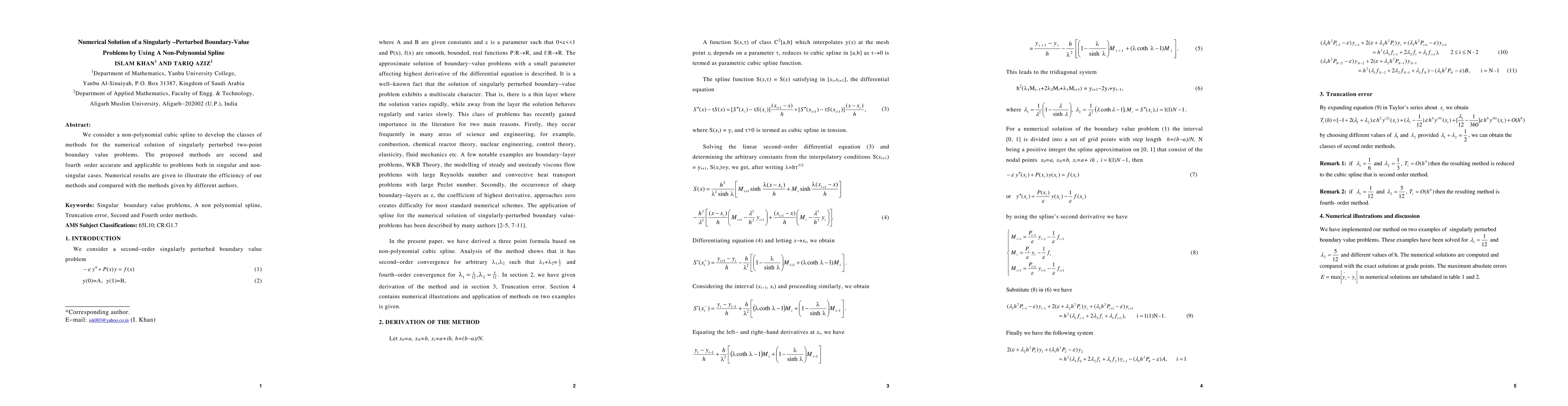This paper proposes non-polynomial cubic spline methods for solving singularly perturbed boundary-value problems, achieving second and fourth order accuracy. Numerical results demonstrate the effectiveness of the methods compared to other existing approaches.