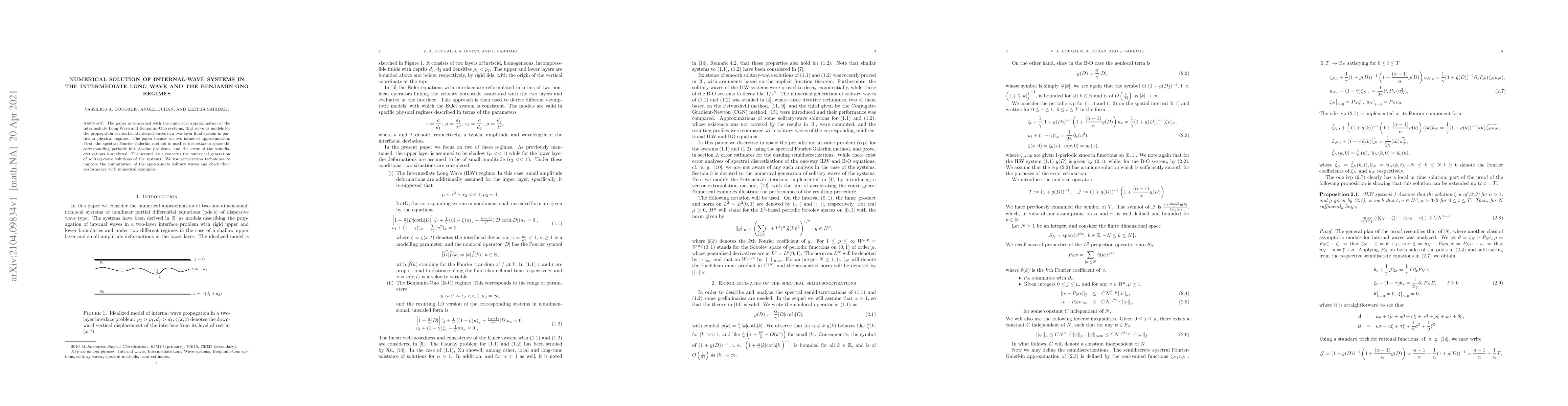 This paper investigates numerical methods for solving Intermediate Long Wave and Benjamin-Ono systems, which model internal waves in fluid systems. It employs the spectral Fourier-Galerkin method for spatial discretization and analyzes the resulting error, while also developing techniques to efficiently compute solitary wave solutions.