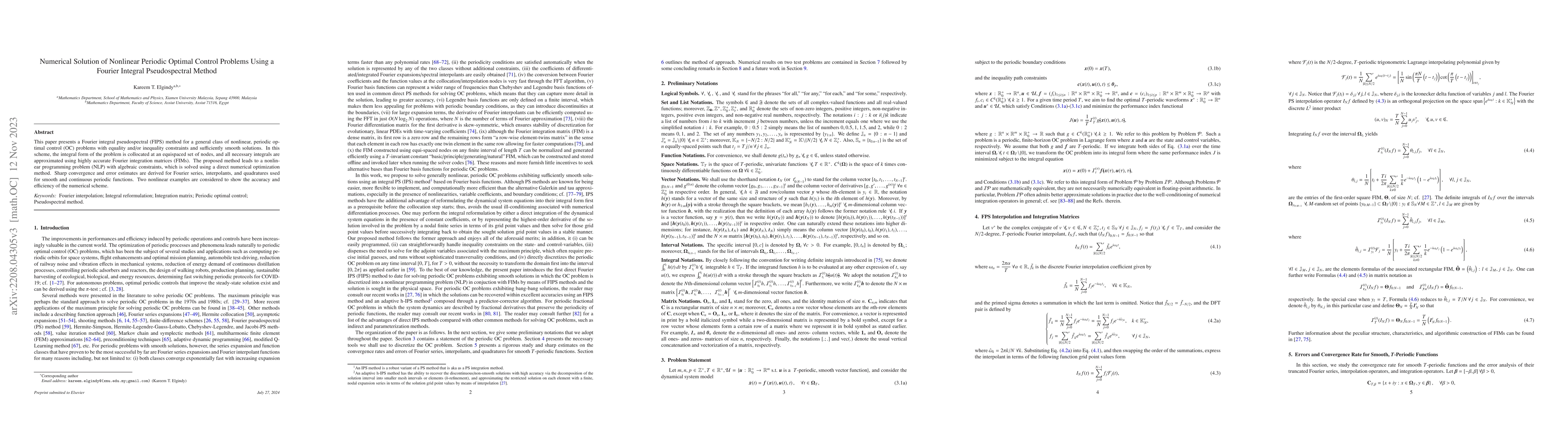This paper introduces a Fourier integral pseudospectral method for solving nonlinear periodic optimal control problems, transforming the problem into a nonlinear programming problem solved via numerical optimization. The method uses Fourier integration matrices for high accuracy and demonstrates effectiveness through two example problems.