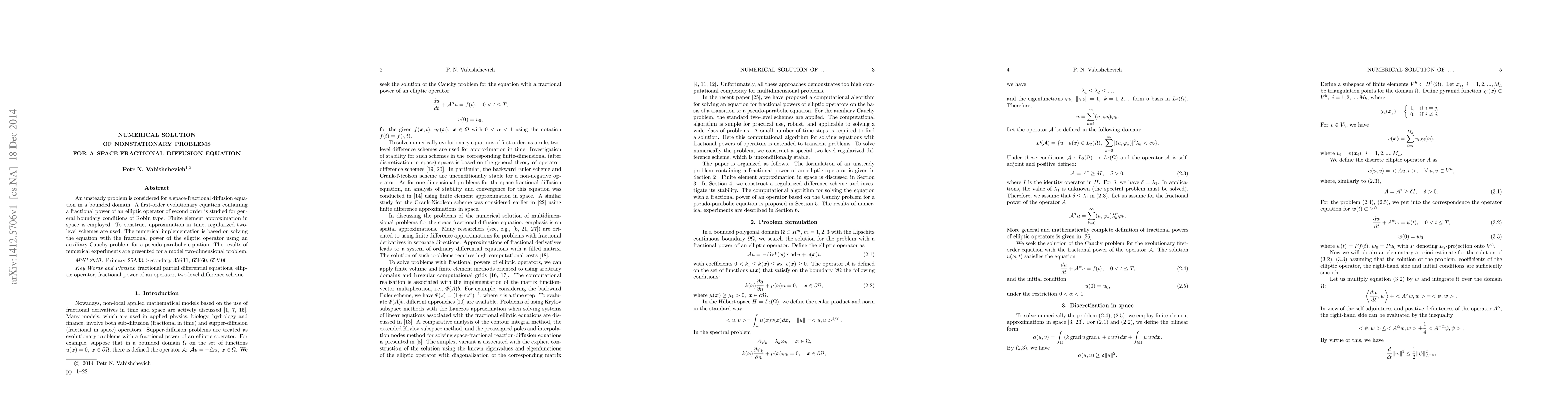 This paper presents a numerical method for solving unsteady problems of a space-fractional diffusion equation using finite element approximation in space and regularized two-level schemes in time. Numerical experiments demonstrate the effectiveness of the approach through a model two-dimensional problem.