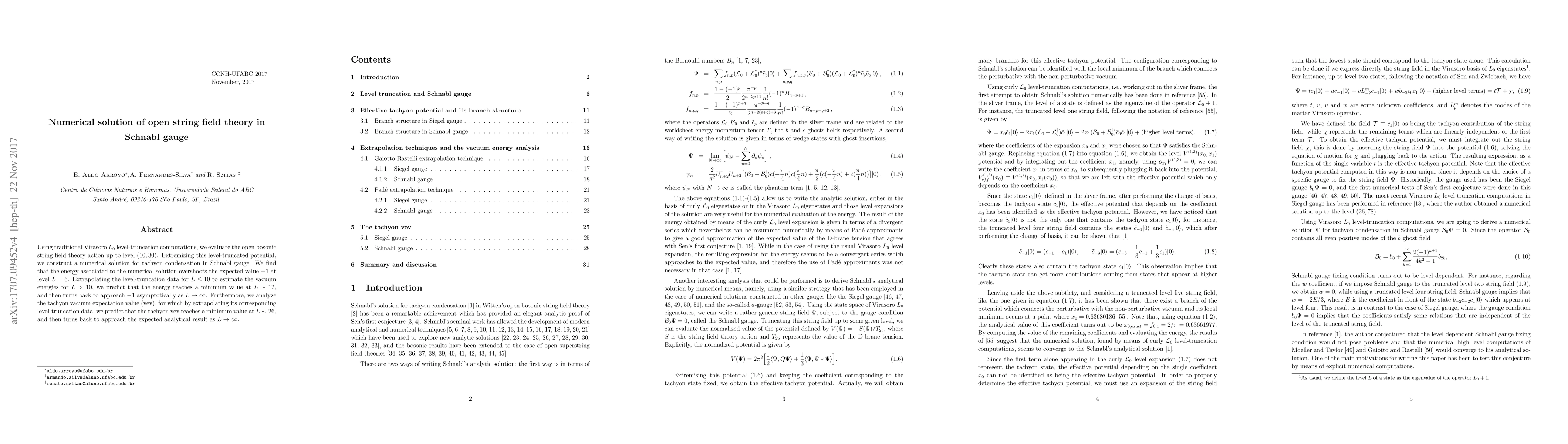 Researchers numerically solved open string field theory in Schnabl gauge up to level (10,30), finding that energy reaches a minimum at L ~ 12 and tachyon vev at L ~ 26, before approaching expected values as L approaches infinity.