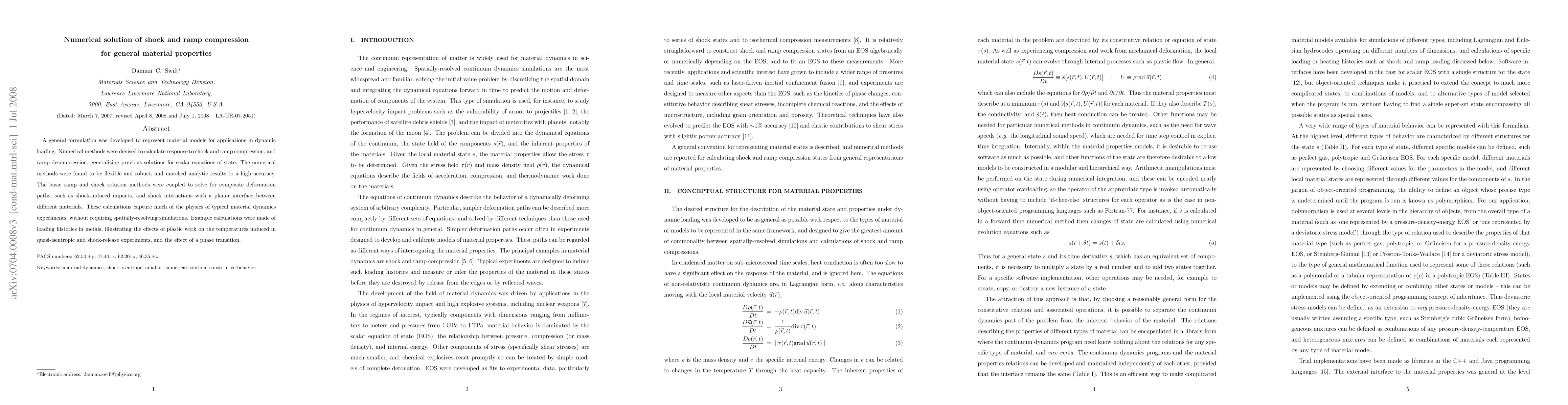 This paper presents a general numerical method for solving material models under dynamic loading conditions, specifically for shock and ramp compression scenarios. The developed methods accurately capture composite deformation paths and material behavior, including plastic work and phase transitions, without the need for detailed spatial simulations.