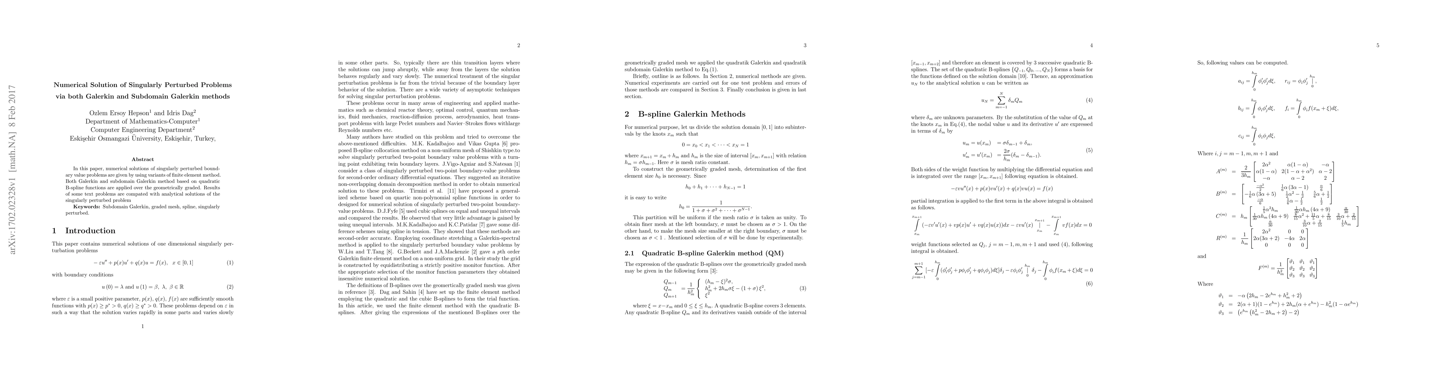 This paper presents numerical solutions for singularly perturbed boundary value problems using both Galerkin and subdomain Galerkin methods based on quadratic B-spline functions. Results are compared with analytical solutions to validate the effectiveness of the applied methods.