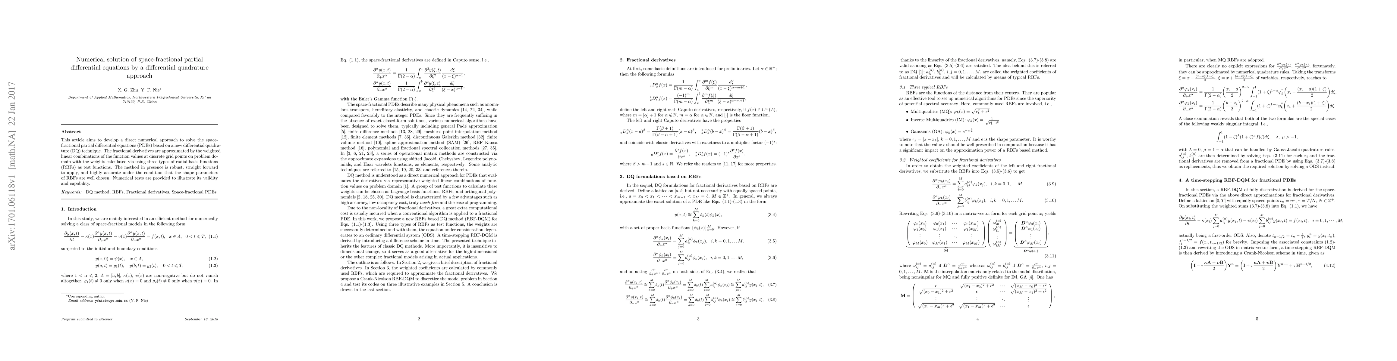 This paper proposes a new differential quadrature method for solving space-fractional partial differential equations, approximating fractional derivatives using radial basis functions. The method is shown to be robust, straightforward, and highly accurate when the shape parameters are well selected, as demonstrated by numerical tests.
