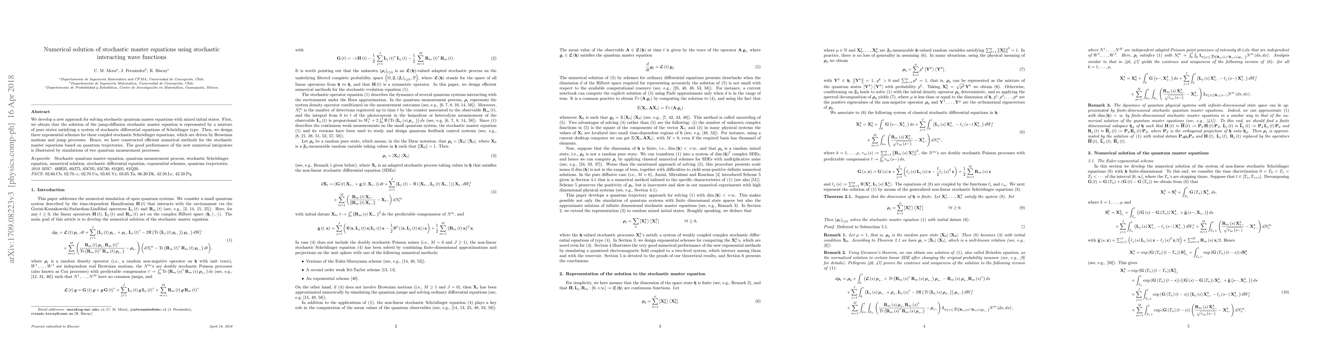 This paper introduces a novel method for solving stochastic quantum master equations with mixed initial states by representing their solutions as mixtures of pure states governed by stochastic differential equations. The authors propose three efficient exponential schemes for numerically integrating these equations, demonstrating their effectiveness through simulations of quantum measurement processes.