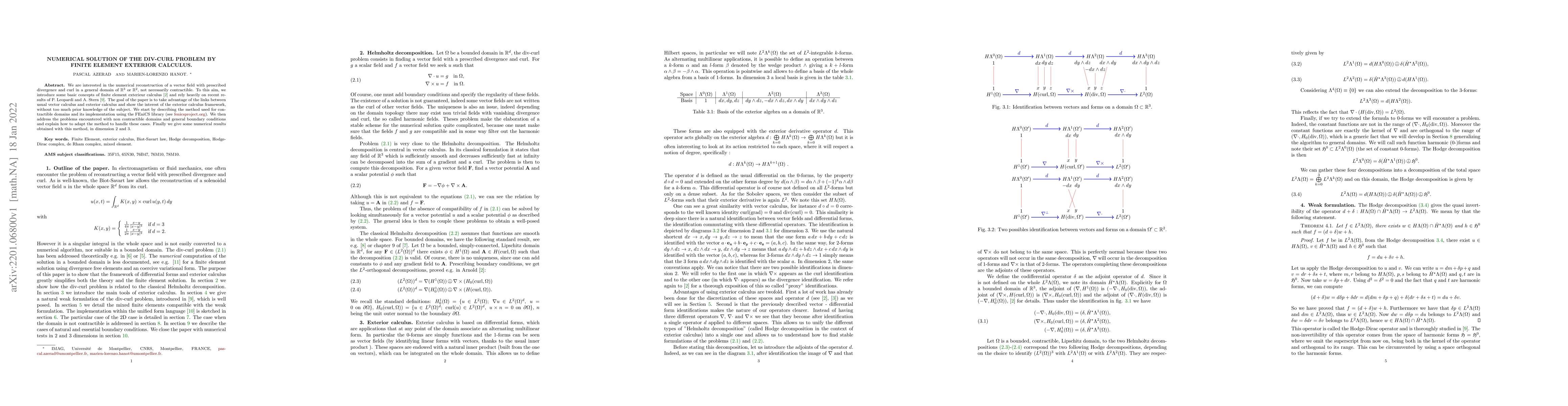 We are interested in the numerical reconstruction of a vector field with prescribed divergence and curl in a general domain of R 3 or R 2 , not necessarily contractible. To this aim, we introduce some basic concepts of finite element exterieur calculus and rely heavily on recent results of P. Leopardi and A. Stern. The goal of the paper is to take advantage of the links between usual vector calculus and exterior calculus and show the interest of the exterior calculus framework, without too much prior knowledge of the subject. We start by describing the method used for contractible domains and its implementation using the FEniCS library (see fenicsproject.org). We then address the problems encountered with non contractible domains and general boundary conditions and explain how to adapt the method to handle these cases. Finally we give some numerical results obtained with this method, in dimension 2 and 3.