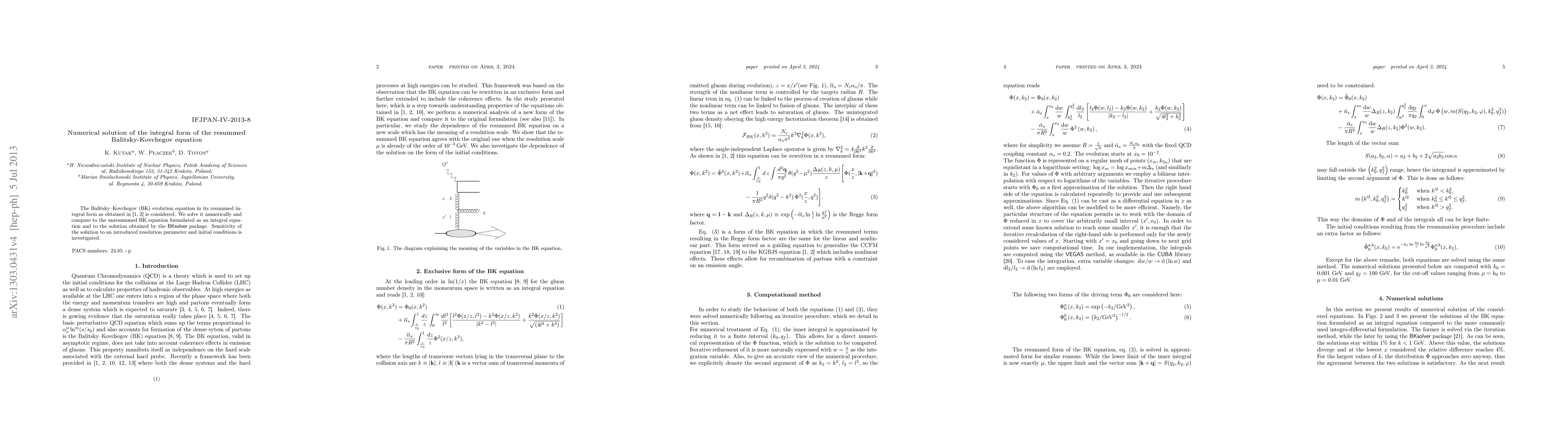 This paper numerically solves the resummed integral form of the Balitsky-Kovchegov (BK) evolution equation, comparing it to the unresummed BK equation and the BKsolver package solution. It also examines the sensitivity of the results to resolution parameters and initial conditions.