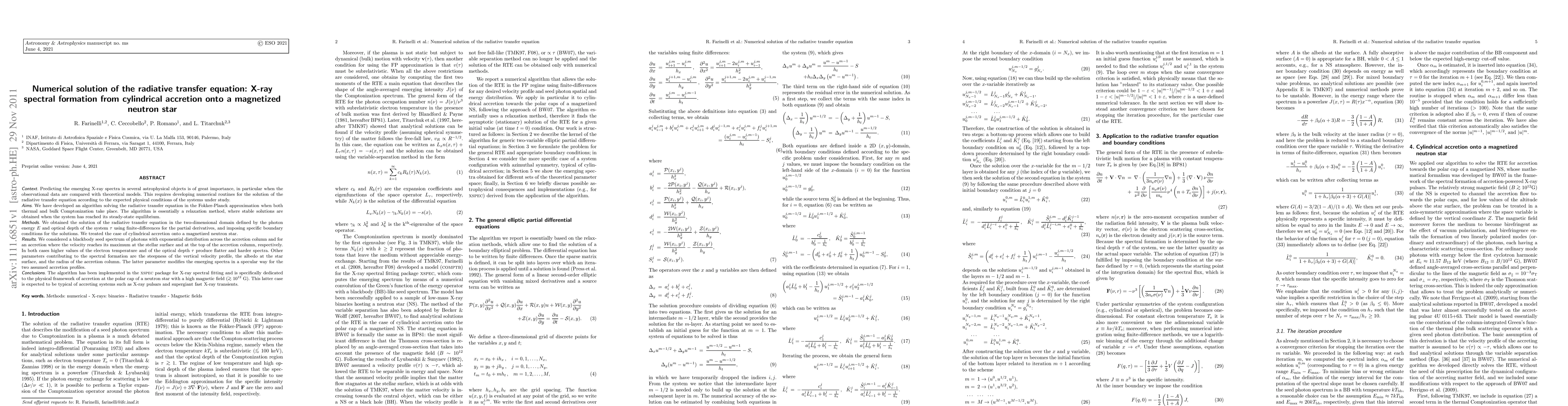 Predicting the emerging X-ray spectra in several astrophysical objects is of great importance, in particular when the observational data are compared with theoretical models. To this aim, we have developed an algorithm solving the radiative transfer equation in the Fokker-Planck approximation when both thermal and bulk Comptonization take place. The algorithm is essentially a relaxation method, where stable solutions are obtained when the system has reached its steady-state equilibrium. We obtained the solution of the radiative transfer equation in the two-dimensional domain defined by the photon energy E and optical depth of the system tau using finite-differences for the partial derivatives, and imposing specific boundary conditions for the solutions. We treated the case of cylindrical accretion onto a magnetized neutron star. We considered a blackbody seed spectrum of photons with exponential distribution across the accretion column and for an accretion where the velocity reaches its maximum at the stellar surface and at the top of the accretion column, respectively. In both cases higher values of the electron temperature and of the optical depth tau produce flatter and harder spectra. Other parameters contributing to the spectral formation are the steepness of the vertical velocity profile, the albedo at the star surface, and the radius of the accretion column. The latter parameter modifies the emerging spectra in a specular way for the two assumed accretion profiles. The algorithm has been implemented in the XSPEC package for X-ray spectral fitting and is specifically dedicated to the physical framework of accretion at the polar cap of a neutron star with a high magnetic field (> 10^{12} G), which is expected to be typical of accreting systems such as X-ray pulsars and supergiant fast X-ray transients.