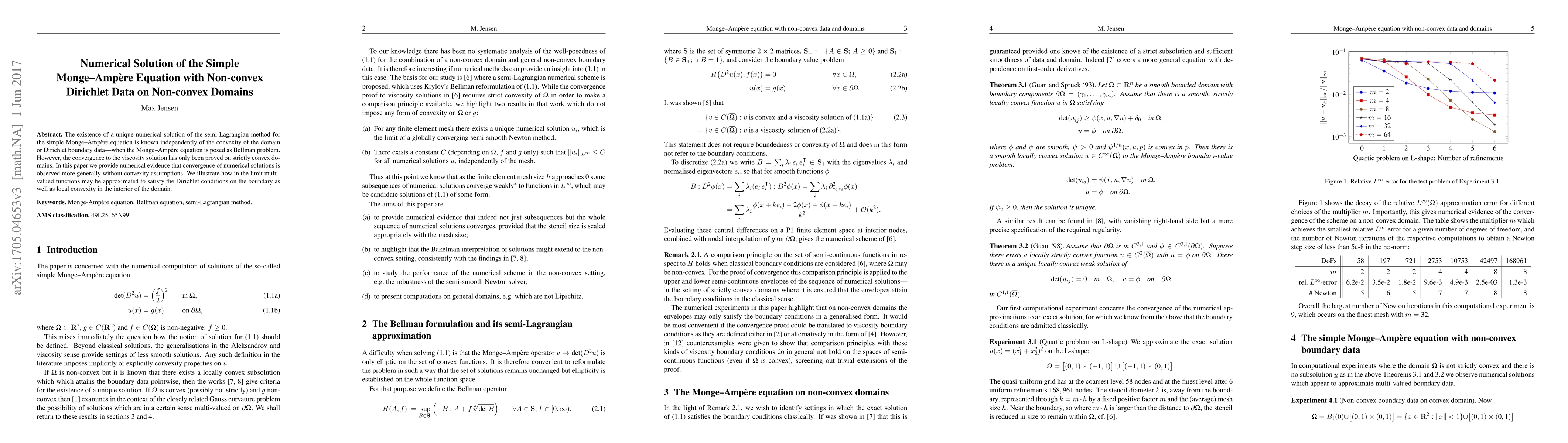 The existence of a unique numerical solution of the semi-Lagrangian method for the simple Monge-Amp\`ere equation is known independently of the convexity of the domain or Dirichlet boundary data -- when the Monge-Amp\`ere equation is posed as Bellman problem. However, the convergence to the viscosity solution has only been proved on strictly convex domains. In this paper we provide numerical evidence that convergence of numerical solutions is observed more generally without convexity assumptions. We illustrate how in the limit multi-valued functions may be approximated to satisfy the Dirichlet conditions on the boundary as well as local convexity in the interior of the domain.