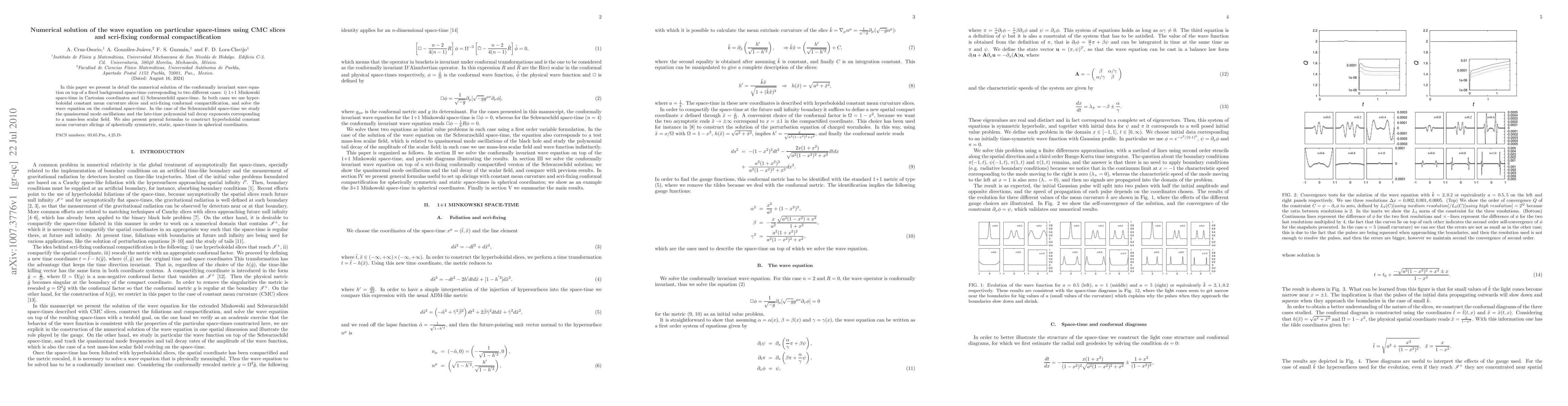 This paper details numerical solutions of the conformally invariant wave equation on Minkowski and Schwarzschild space-times using hyperboloidal constant mean curvature slices and scri-fixing conformal compactification. It examines quasinormal modes and late-time decay in Schwarzschild space-time, and provides formulas for constructing such slicings in spherically symmetric, static space-times.