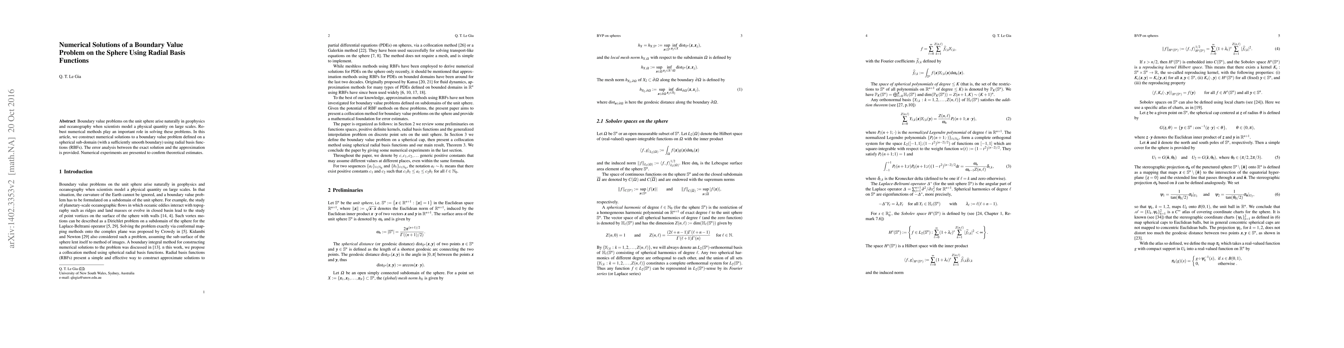 This paper develops numerical solutions for boundary value problems on a spherical sub-domain using radial basis functions (RBF). It provides an error analysis and confirms theoretical estimates with numerical experiments, demonstrating the robustness of the method for geophysics and oceanography applications.