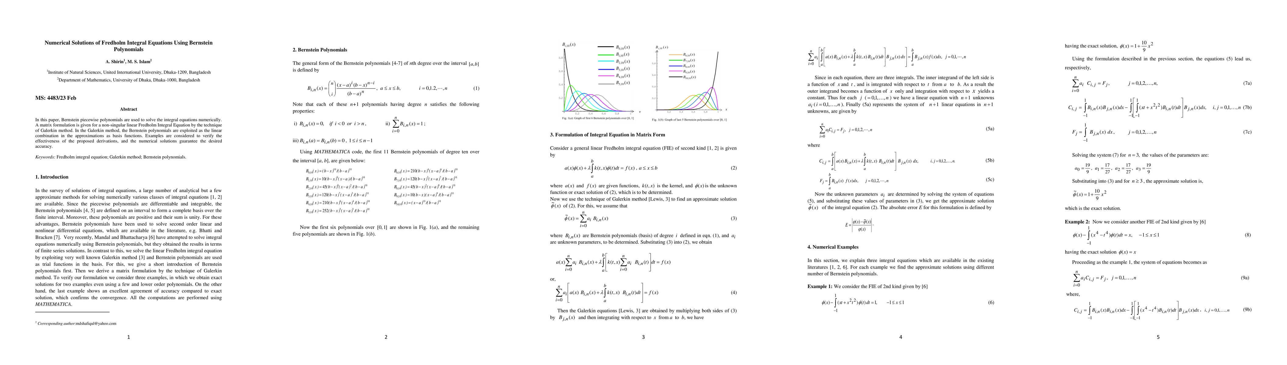 In this paper, Bernstein piecewise polynomials are used to solve the integral equations numerically. A matrix formulation is given for a non-singular linear Fredholm Integral Equation by the technique of Galerkin method. In the Galerkin method, the Bernstein polynomials are used as the approximation of basis functions. Examples are considered to verify the effectiveness of the proposed derivations, and the numerical solutions guarantee the desired accuracy.