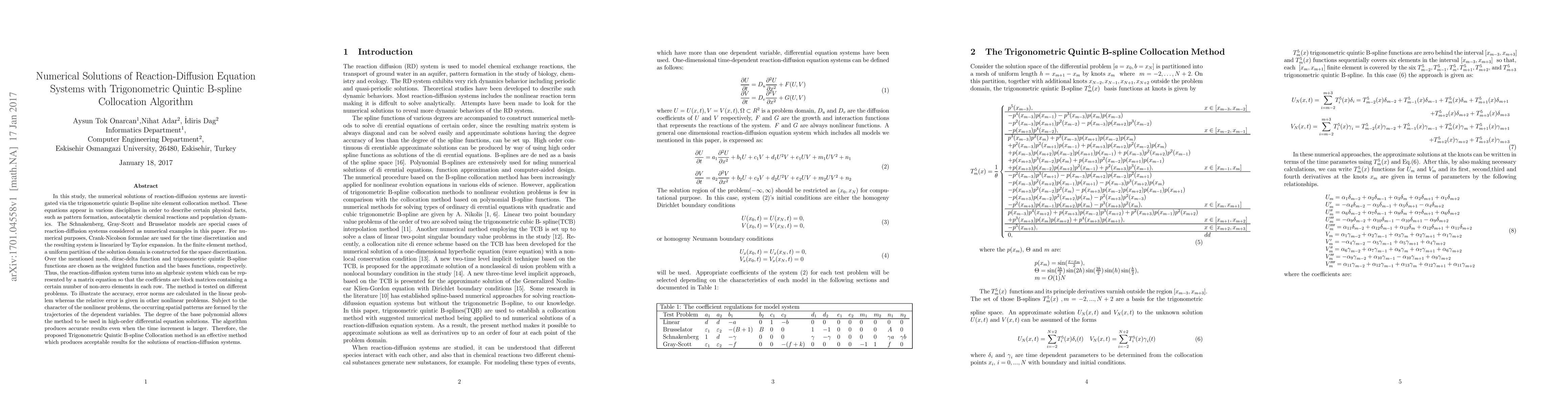 This paper proposes a trigonometric quintic B-spline collocation method for solving reaction-diffusion systems, demonstrating its effectiveness through the Crank-Nicolson scheme for time discretization and Taylor expansion for linearization. The method is tested on various models, showing accurate results and adaptability for high-order differential equations.