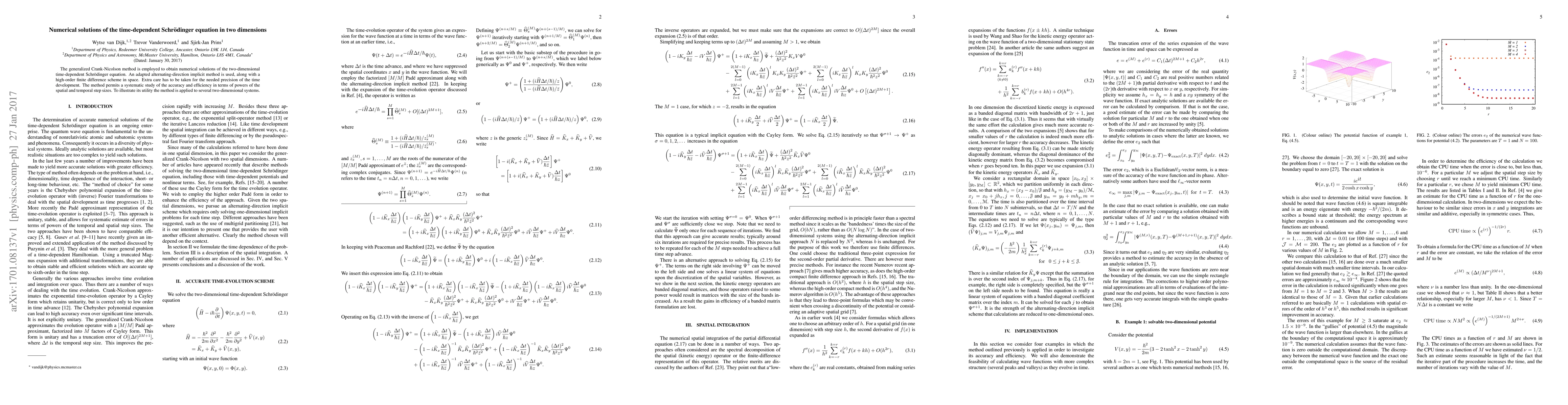 This paper employs the generalized Crank-Nicolson method to numerically solve the two-dimensional time-dependent Schrödinger equation, utilizing an adapted alternating-direction implicit scheme and high-order finite differences. The study assesses accuracy and efficiency based on step size variations and applies the method to various two-dimensional systems.