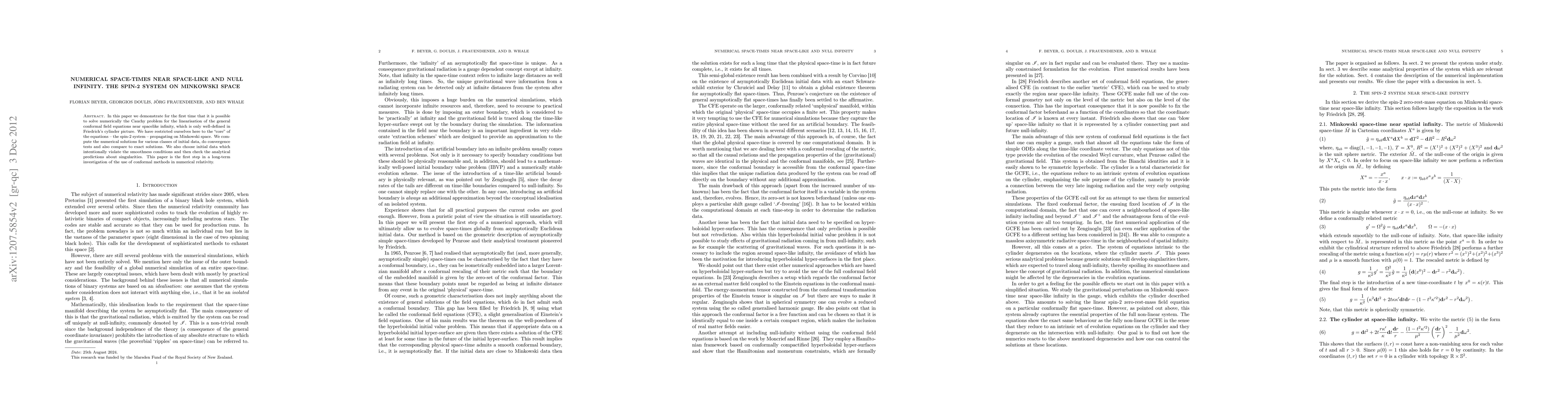 This paper presents the first numerical solution of the Cauchy problem for the linearized conformal field equations near space-like infinity, focusing on the spin-2 system on Minkowski space. The authors perform convergence tests and compare numerical results with exact solutions, also exploring initial data that violate smoothness conditions to test analytical predictions about singularities.