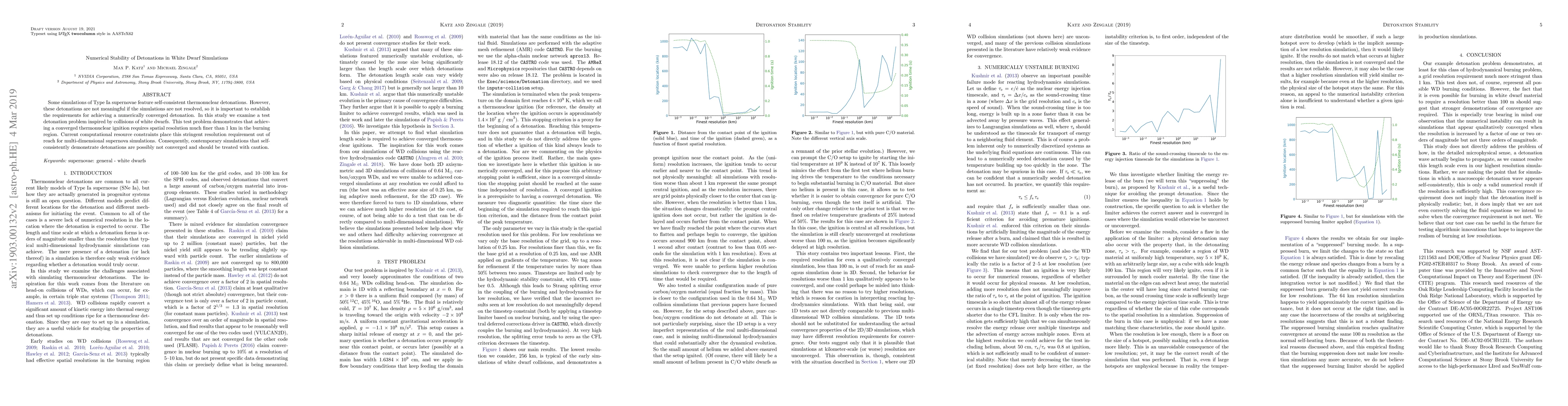 This study investigates the numerical stability of thermonuclear detonations in white dwarf simulations, finding that achieving a numerically converged detonation requires spatial resolution finer than 1 km. Current computational limitations mean that multi-dimensional supernova simulations may not meet this requirement, suggesting that existing detonation simulations may not be fully resolved.