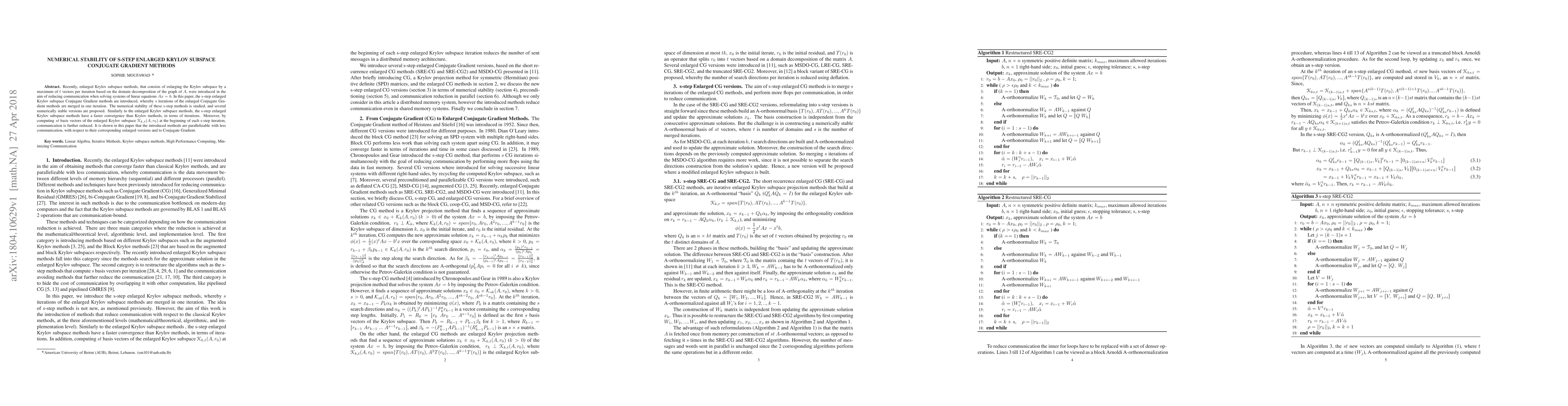 This paper introduces s-step enlarged Krylov subspace Conjugate Gradient methods that combine multiple iterations of enlarged Conjugate Gradient methods into one, reducing communication and improving convergence compared to traditional Krylov subspace methods.