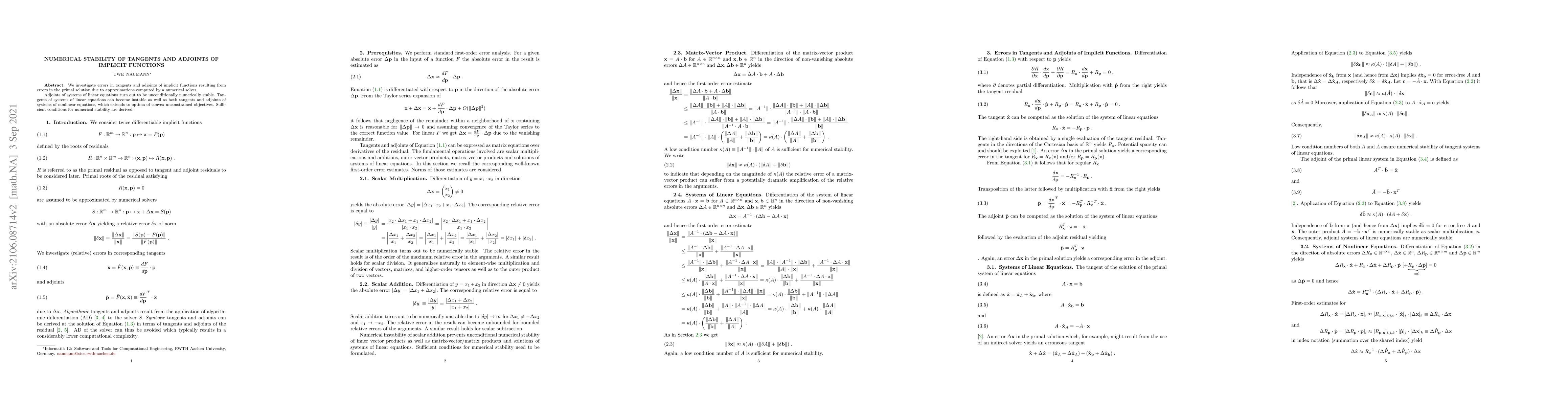 This paper explores numerical stability issues in tangents and adjoints of implicit functions, revealing that while adjoints of linear systems are stable, tangents of linear systems and both tangents and adjoints of nonlinear systems can become unstable. Sufficient conditions for stability are established.