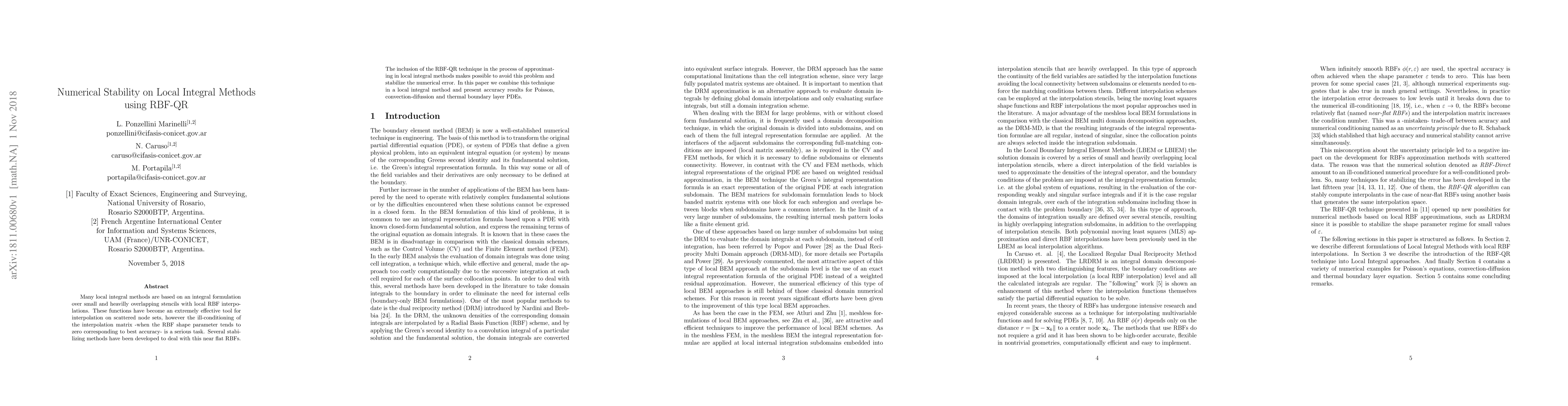 This paper presents a method combining local integral methods with RBF-QR to stabilize numerical errors in solving PDEs like Poisson, convection-diffusion, and thermal boundary layer equations, improving accuracy and stability.