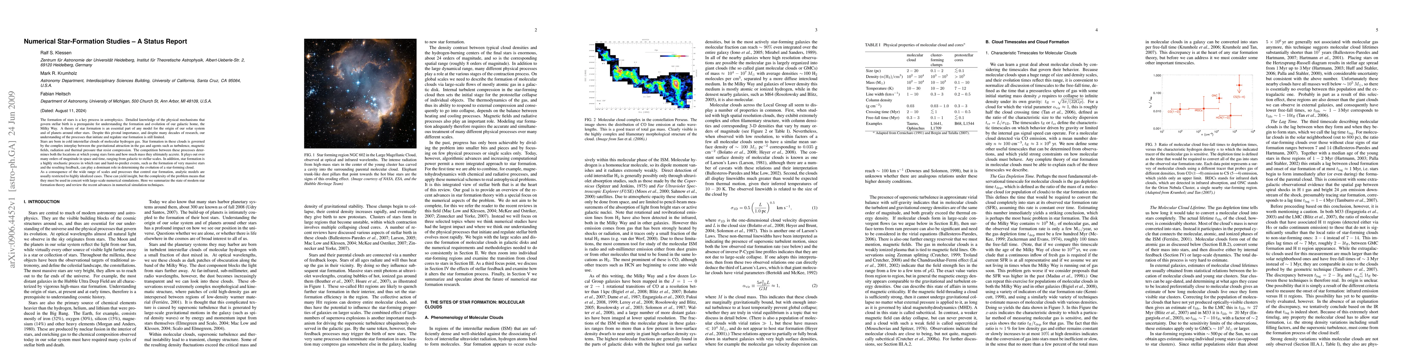 The formation of stars is a key process in astrophysics. Detailed knowledge of the physical mechanisms that govern stellar birth is a prerequisite for understanding the formation and evolution of our galactic home, the Milky Way. A theory of star formation is an essential part of any model for the origin of our solar system and of planets around other stars. Despite this pivotal importance, and despite many decades of research, our understanding of the processes that initiate and regulate star formation is still limited. Stars are born in cold interstellar clouds of molecular hydrogen gas. Star formation in these clouds is governed by the complex interplay between the gravitational attraction in the gas and agents such as turbulence, magnetic fields, radiation and thermal pressure that resist compression. The competition between these processes determines both the locations at which young stars form and how much mass they ultimately accrete. It plays out over many orders of magnitude in space and time, ranging from galactic to stellar scales. In addition, star formation is a highly stochastic process in which rare and hard-to-predict events, such as the formation of very massive stars and the resulting feedback, can play a dominant role in determining the evolution of a star-forming cloud. As a consequence of the wide range of scales and processes that control star formation, analytic models are usually restricted to highly idealized cases. These can yield insight, but the complexity of the problem means that they must be used in concert with large-scale numerical simulations. Here we summarize the state of modern star formation theory and review the recent advances in numerical simulation techniques.