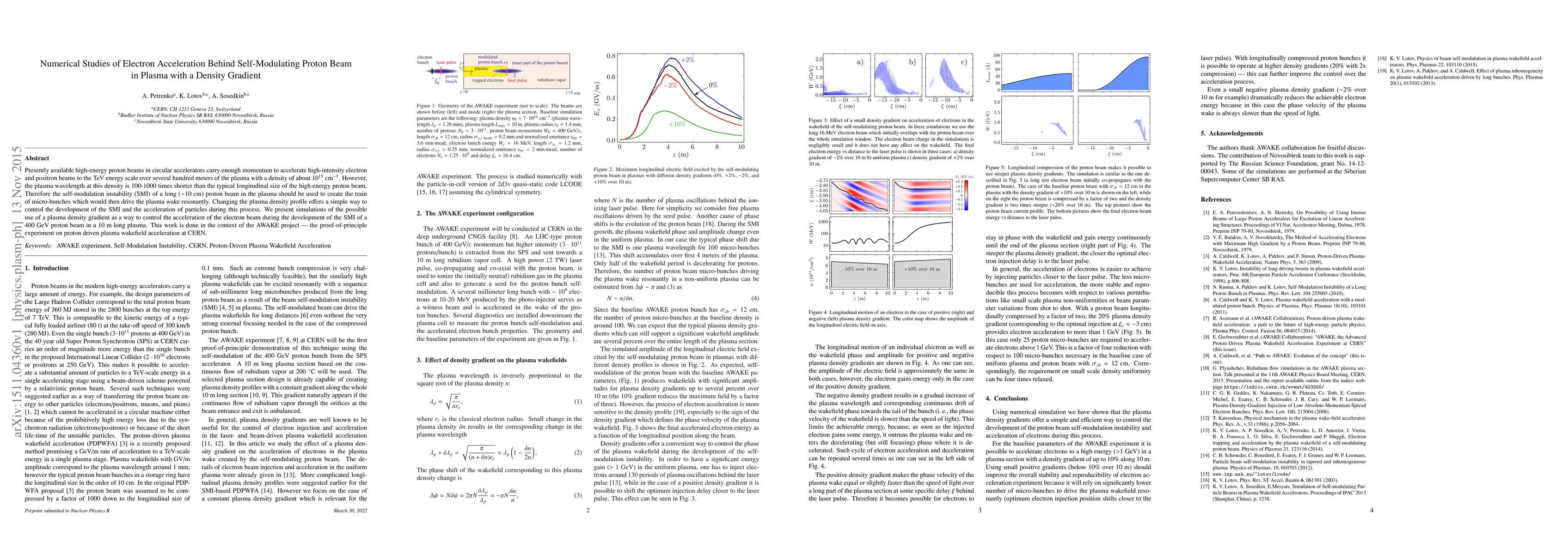 This paper investigates the use of self-modulation instability in a proton beam to accelerate electrons to TeV energies in a plasma with a density gradient. Simulations show that adjusting the plasma density profile can control the development of the instability and enhance electron beam acceleration, relevant to the AWAKE project at CERN.