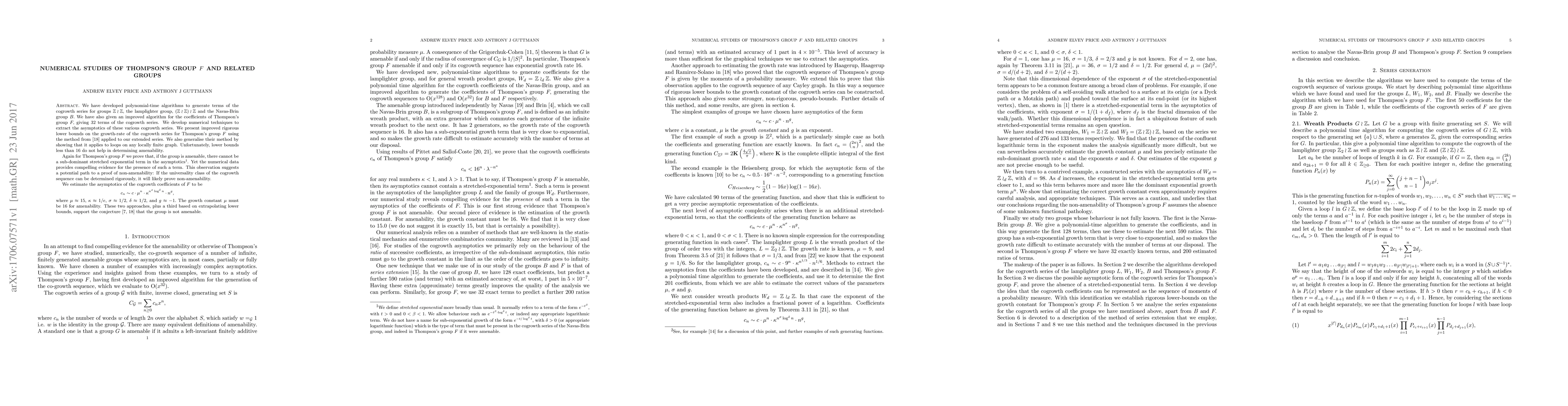 Researchers developed algorithms to analyze the growth series of several groups, including Thompson's group F, finding evidence for a stretched exponential term in its asymptotics that suggests potential proof of non-amenability.
